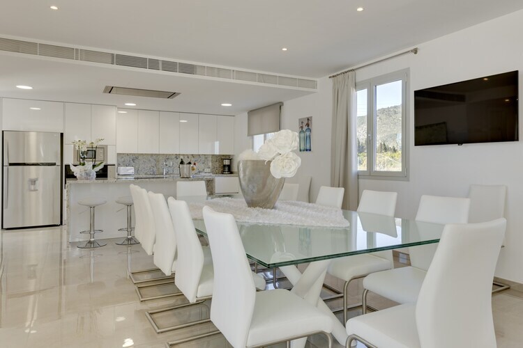 Cette superbe villa, Eden Son Frare, allie luxe, confort et tranquillité, offrant un refuge idéal pour les familles ou les groupes. Avec ses sept chambres doubles spacieuses, chacune équipée de sa propre salle de bain, la propriété peut accueillir confortablement jusqu'à 14 personnes. Son design moderne et minimaliste et ses finitions haut de gamme créent une atmosphère chaleureuse dans toute la villa. Un grand salon avec cheminée, une salle à manger ouverte et une cuisine entièrement équipée avec îlot central offrent un espace généreux pour se détendre et recevoir.