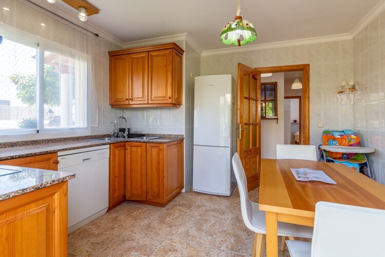 Rez-de-chaussée: (Salle de séjour(TV(satellite), table, coin salon, Lecteur DVD), cuisine ouverte(bouilloire, grille-pain, cafetière/percolateur, four, micro ondes, lave-vaisselle , combinaison réfrigérateur/congélateur, Presse-agrumes, ), chambre(lit double), chambre(lit simple, lit simple), chambre(lit simple, lit simple), salle de bains(baignoire), salle de bains(douche), Accès Internet) Meubles de jardin, lave-linge , climatisation, terrasse, jardin(clôturé), barbecue, parking, piscine(privé), fer à repasser, pompe à chaleur air/air, sèche-cheveux