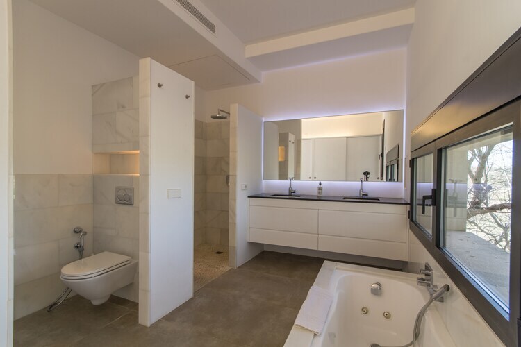 Le design moderne de la villa offre tout le confort nécessaire pour un séjour confortable. Elle dispose d'une cuisine indépendante entièrement équipée avec plaques à induction, réfrigérateur, micro-ondes, lave-vaisselle et cafetière, idéale pour préparer vos repas. Le séjour s'ouvre sur une grande terrasse de 200 m² où vous pourrez profiter de repas en plein air et vous détendre. Pour votre confort, la villa dispose de la climatisation, du Wi-Fi haut débit, d'une télévision par satellite et d'un jacuzzi pour une détente absolue. Un lave-linge, un barbecue et un grand parking sont également à votre disposition.
