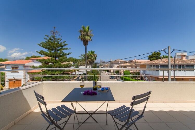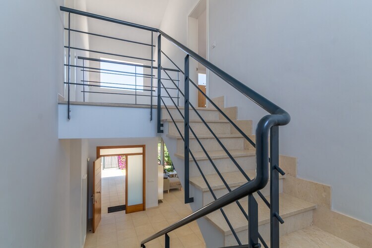 À l'intérieur, les 212 m² de la villa sont répartis sur deux étages. L'espace de vie ouvert du rez-de-chaussée comprend un coin repas, un coin TV convivial et une cuisine moderne avec bar donnant sur la terrasse. Deux chambres se trouvent au rez-de-chaussée, tandis que l'étage en compte deux autres, chacune avec sa salle de bain attenante. C'est l'alliance parfaite entre style, espace et emplacement pour un séjour inoubliable à Majorque.