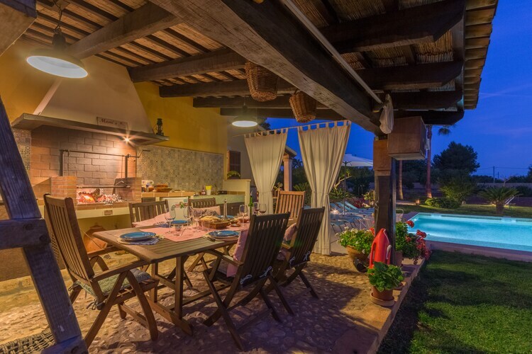 cuisine(foyer, bouilloire, grille-pain, cafetière/percolateur, four, micro ondes, lave-vaisselle , réfrigérateur, congélateur, Presse-agrumes, ), salle à manger-salon(TV(satellite), table, cheminée, coin salon, radio, Alarme), chambre(lit double, TV), chambre(lit simple, lit simple), chambre(lit double), salle de bains(douche), salle de bains(baignoire), Accès Internet, Meubles de jardin, sèche-linge, solarium, lave-linge , balcon, chauffage, climatisation, terrasse, jardin, transats, barbecue, parking, piscine(privé), fer à repasser, sèche-cheveux