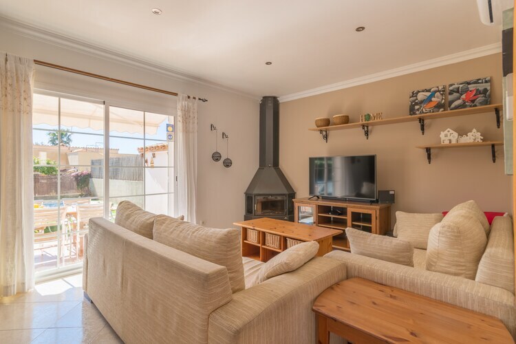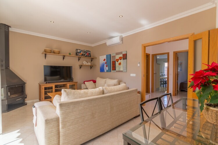 , Salle de séjour(TV(satellite), table, cheminée, coin salon, radio), cuisine ouverte(bouilloire, grille-pain, cafetière/percolateur, four, micro ondes, lave-vaisselle , combinaison réfrigérateur/congélateur, Presse-agrumes, ), chambre(lit simple, lit simple), chambre(lit simple), chambre(lit double), chambre(lit double), salle de bains(baignoire), salle de bains(baignoire), WC(WC), Accès Internet, Meubles de jardin, TV, TV, TV, solarium, lave-linge , balcon, climatisation, terrasse, jardin, transats, barbecue, parking, piscine(privé), fer à repasser, pompe à chaleur air/air, sèche-cheveux