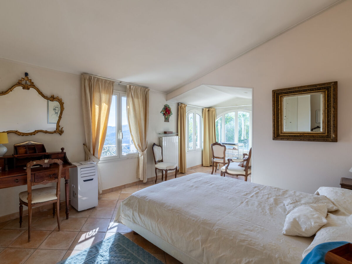 À l'étage supérieur: 1 chambre avec baie vitrée avec 1 lit double (1 x 180 cm, longueur 200 cm), air-conditionné.
