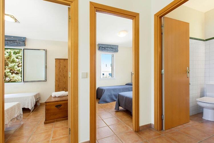 A l'étage, la villa propose trois chambres bien aménagées. La chambre principale dispose d'un lit double (150x190cm), d'une salle de bain attenante avec baignoire et d'un balcon privé. Les deux chambres supplémentaires sont équipées de deux lits simples chacune (90x190cm). Il y a également une deuxième salle de bain avec douche et lave-linge, ainsi que des toilettes supplémentaires pour plus de commodité. La villa est parfaite pour les familles, offrant un refuge paisible avec des équipements modernes.