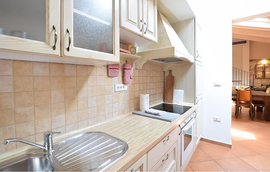 Des murs en pierre naturelle bien entretenus et des poutres claires créent une atmosphère conviviale et confortable dans cette charmante maison. Faites comme chez vous, expérimentez les produits régionaux du marché et célébrez les repas en commun. Allumez la cheminée, installez-vous confortablement sur le canapé et laissez vos enfants profiter des jeux colorés.