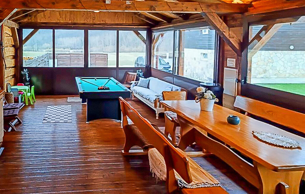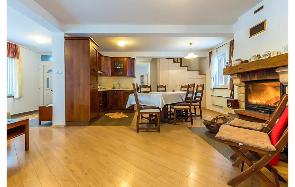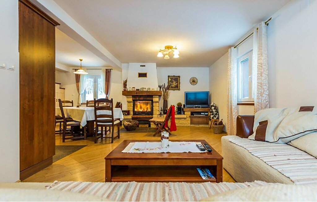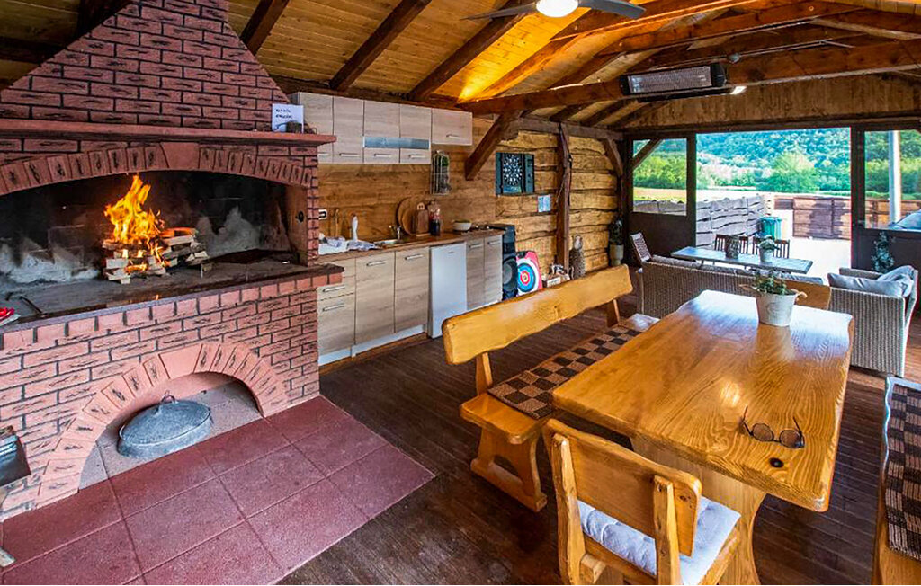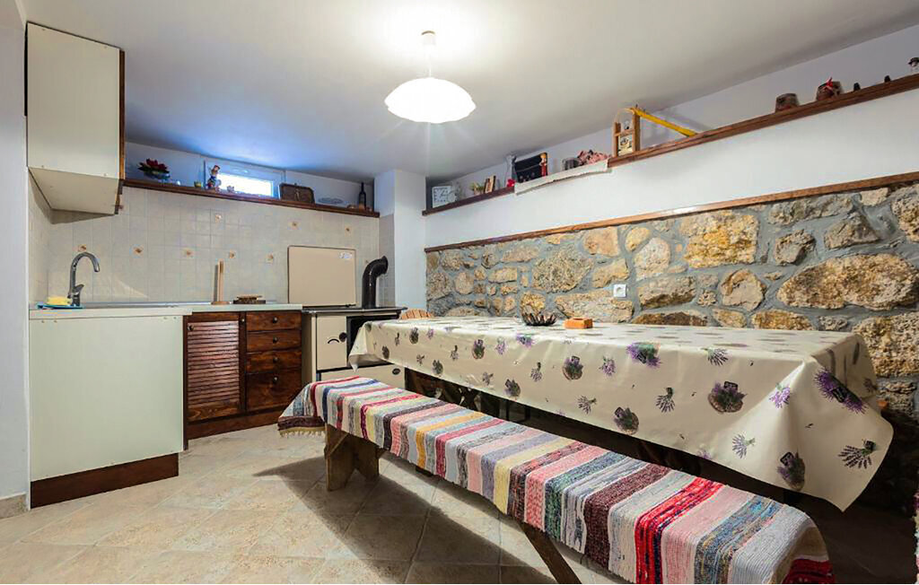 Cette maison de vacances accueillante vous attend au bord des montagnes de Velebit. Elle est idéale pour les familles, les couples ou les petits groupes qui recherchent le calme, l'intimité et la proximité de la nature. Installez-vous confortablement dans les pièces lumineuses et confortables. Le coin canapé confortable, une cheminée ouverte et une télévision créent une atmosphère chaleureuse. Profitez de la cuisine rustique et partagez des repas autour d'une des grandes tables à manger.