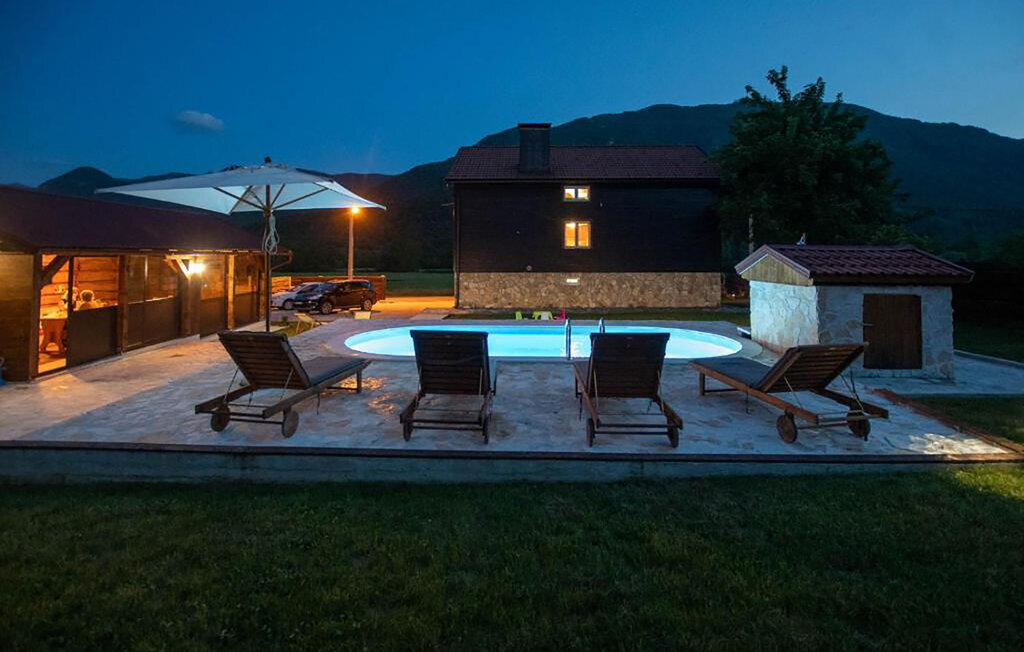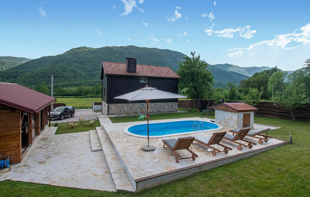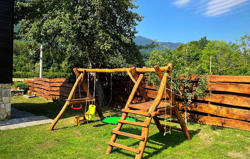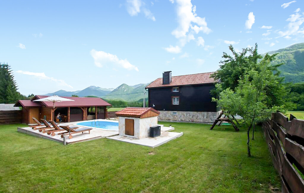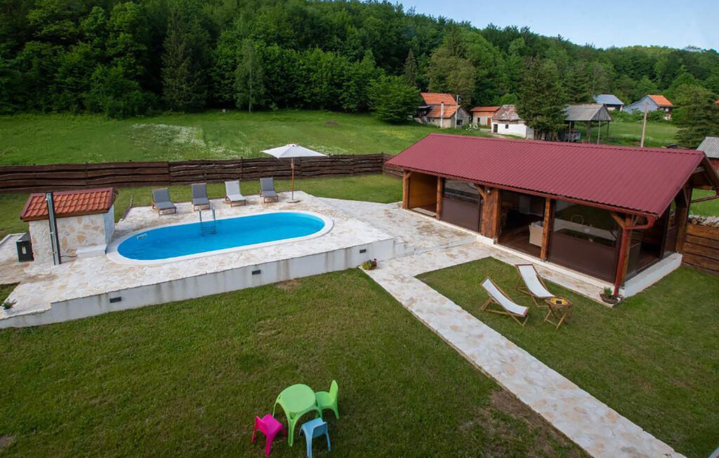 Cette maison de vacances accueillante vous attend au bord des montagnes de Velebit. Elle est idéale pour les familles, les couples ou les petits groupes qui recherchent le calme, l'intimité et la proximité de la nature. Installez-vous confortablement dans les pièces lumineuses et confortables. Le coin canapé confortable, une cheminée ouverte et une télévision créent une atmosphère chaleureuse. Profitez de la cuisine rustique et partagez des repas autour d'une des grandes tables à manger.