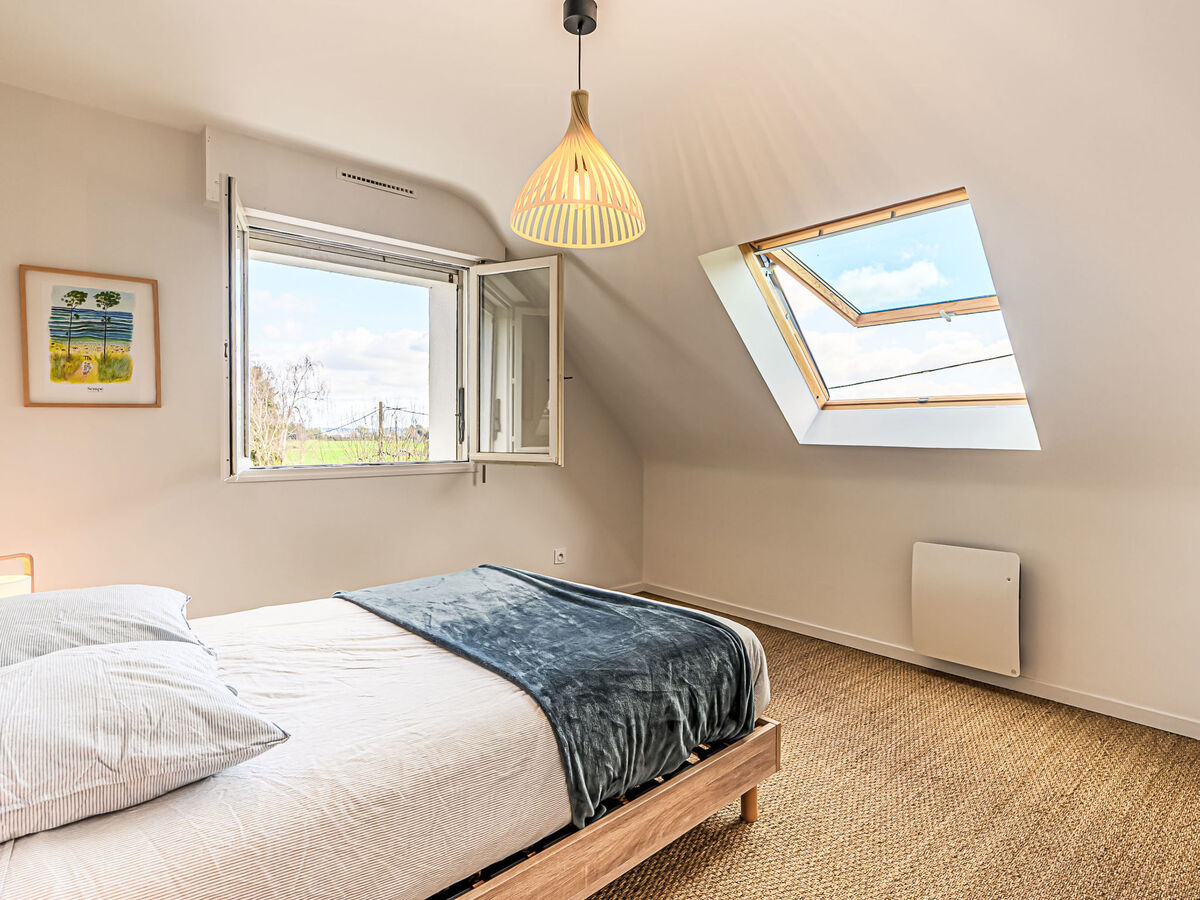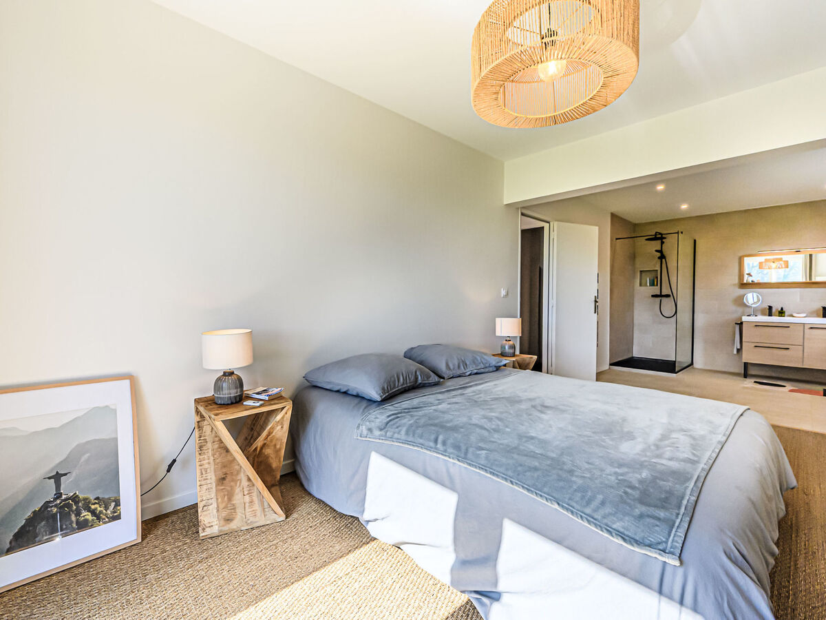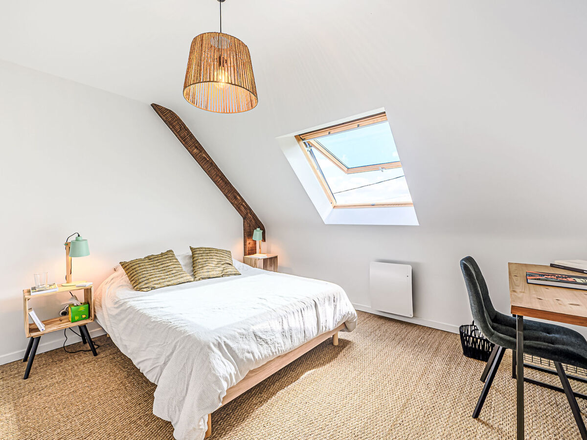 1 chambre avec 1 grand-lit (1 x 160 cm, longueur 190 cm), douche.