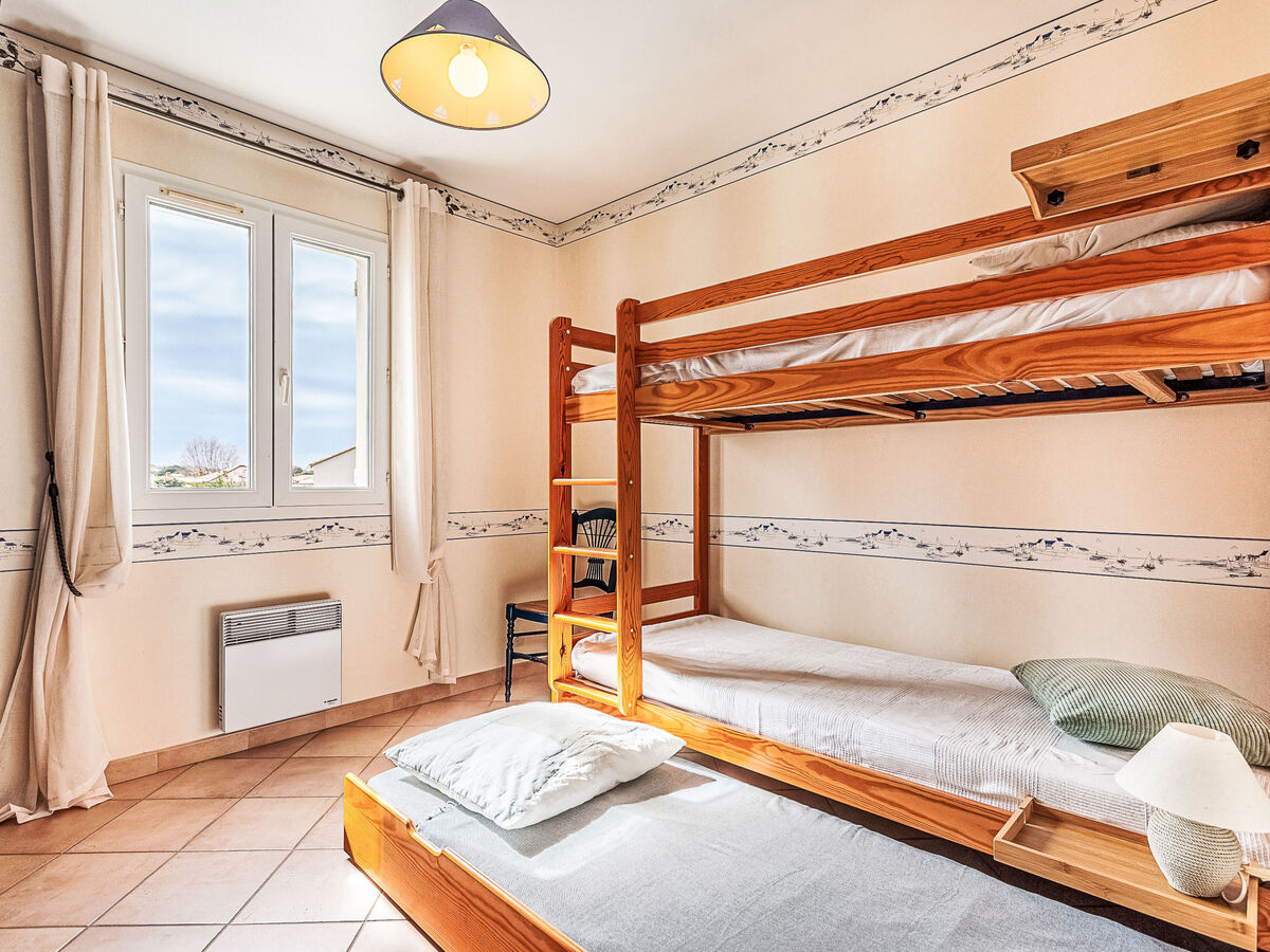 1 chambre avec 1 x 2 lits superposés (80 cm, longueur 190 cm), 1 lit gigogne (1 pers.).