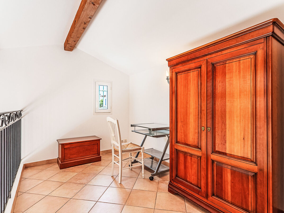 À l'étage supérieur: 1 chambre avec 1 grand-lit (140 cm, longueur 190 cm).