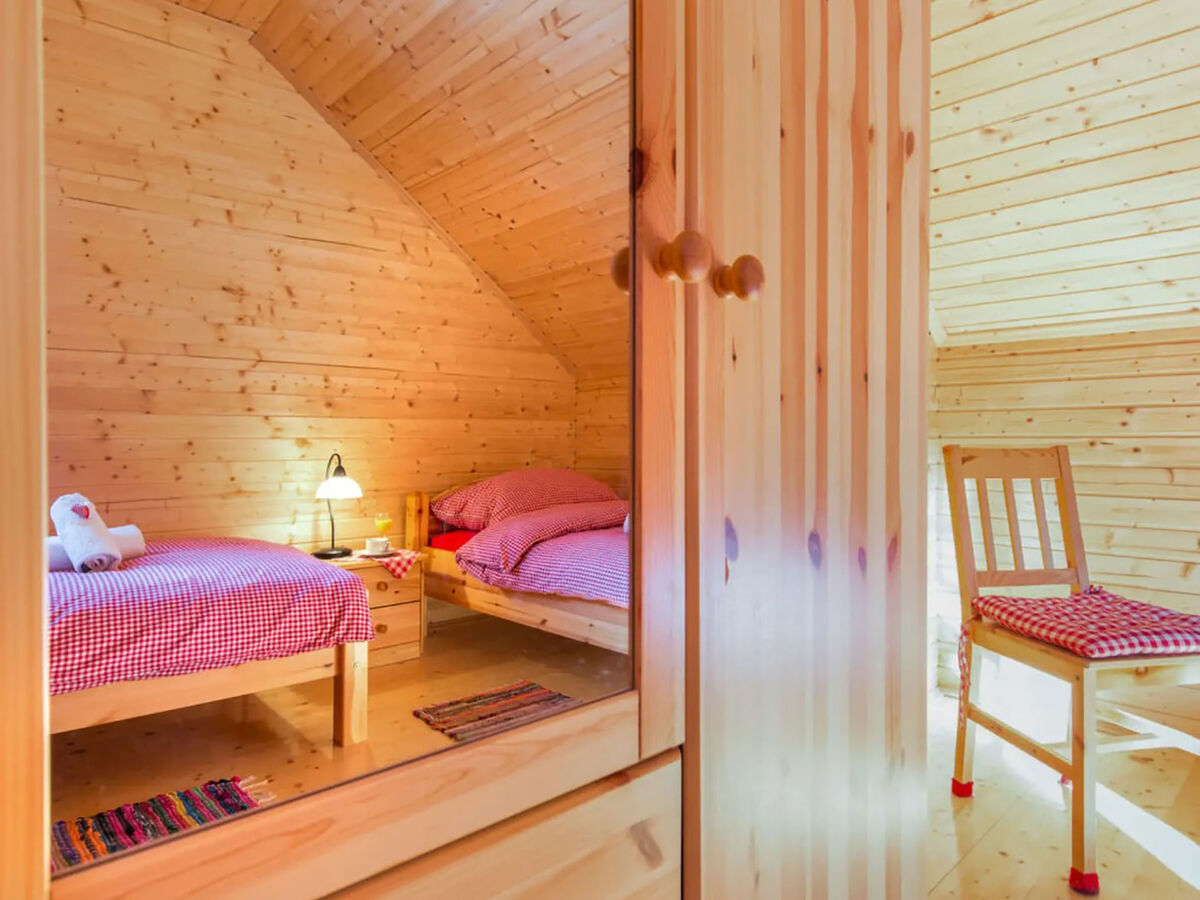 1 chambre, mansardée hauteur plafond 120 - 230 cm avec 2 lits (90 cm, longueur 200 cm).