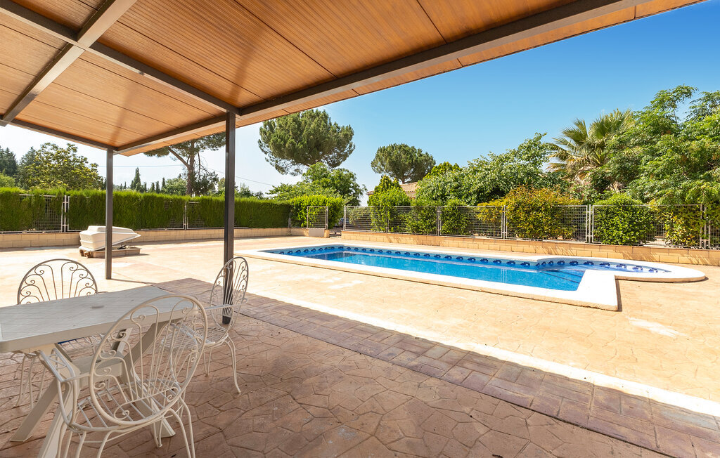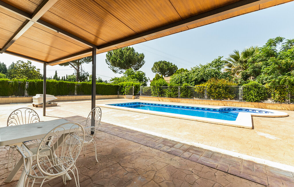 Sortez dans l'espace extérieur bien entretenu et profitez du style de vie méditerranéen. La piscine privée vous invite à une baignade rafraîchissante. Détendez-vous ensuite à l'ombre sous la terrasse couverte et passez des moments conviviaux en plein air, entouré de palmiers et de cyprès.