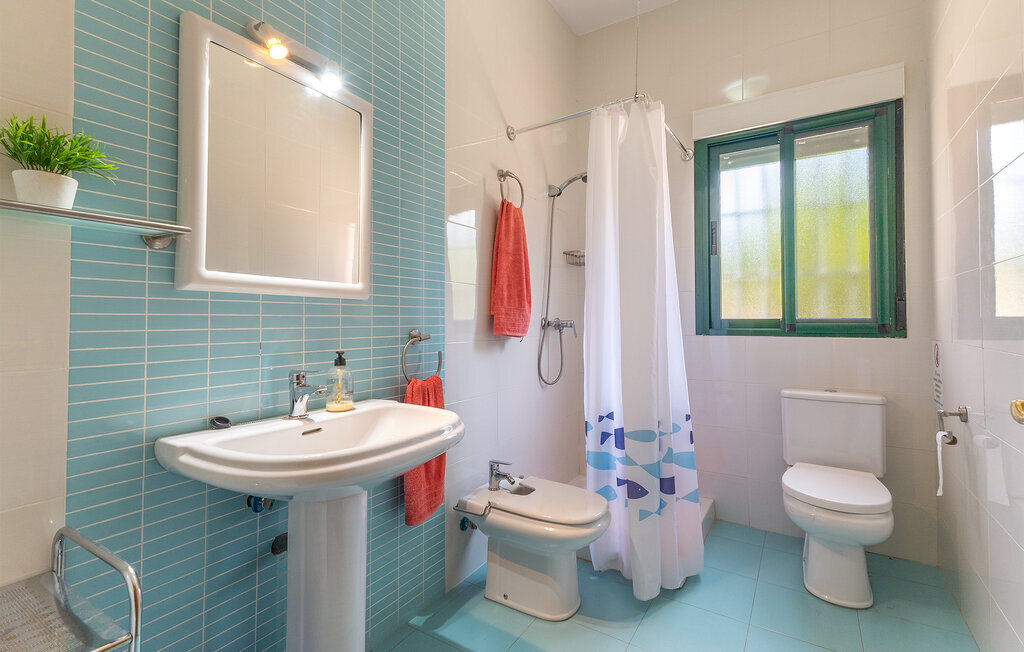 Toilettes: eau chaude/froide, Douchette et baignoire