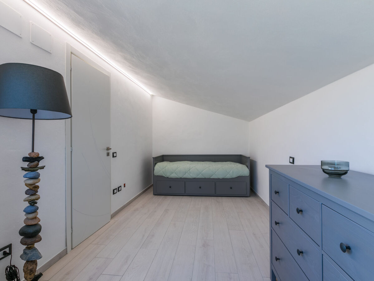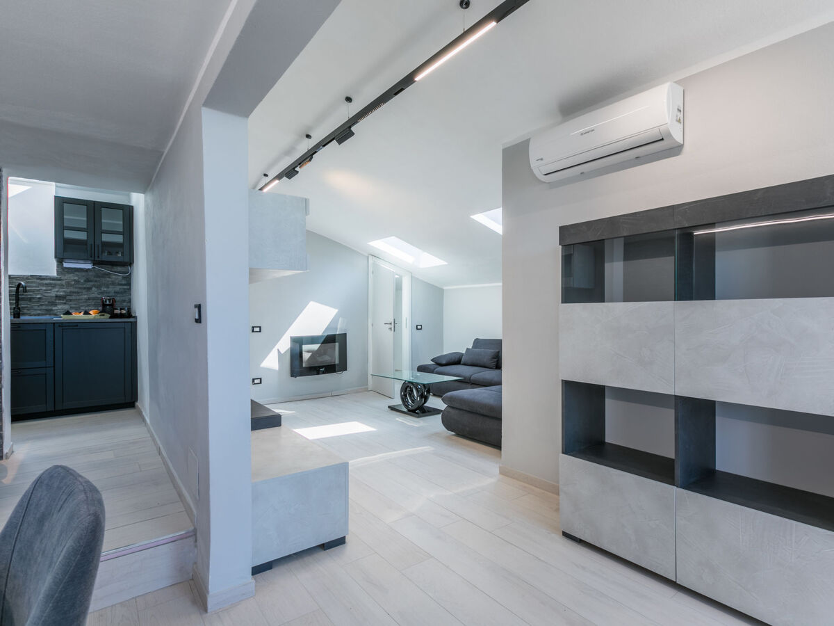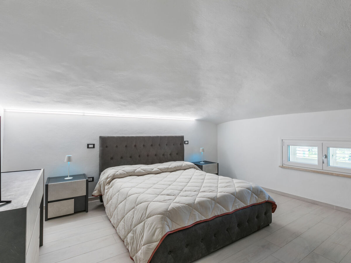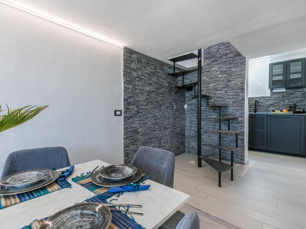 Spacieux et clair, complètement rénové en 2024, aménagement moderne: à l'étage supérieur: (escalier raide) séjour/chambre à coucher avec 1 divan-lit double et TV (écran plat).