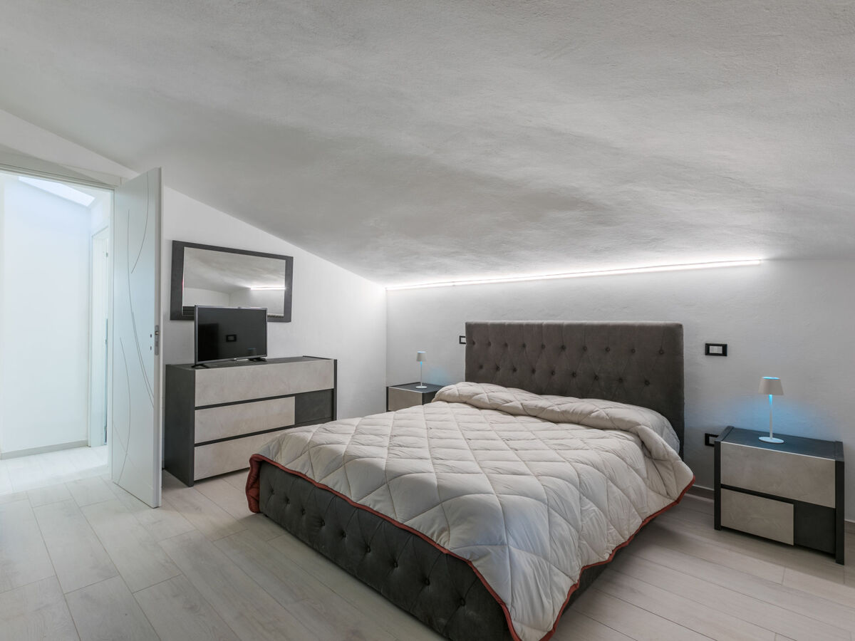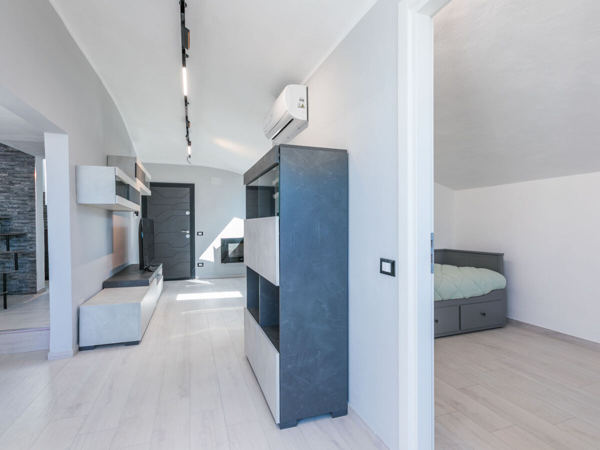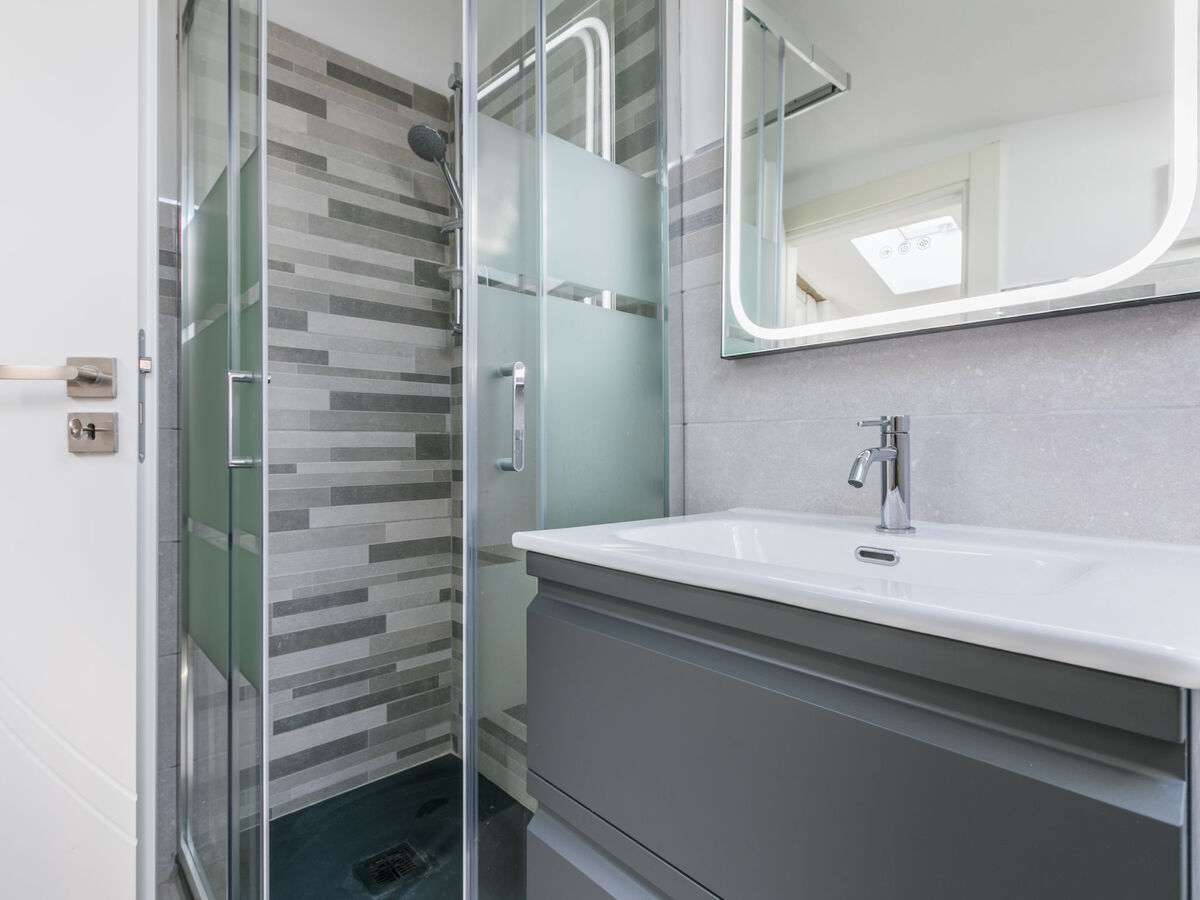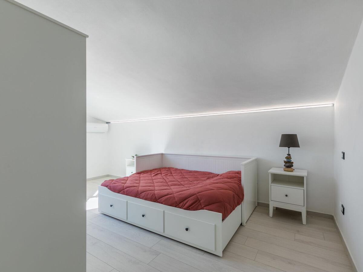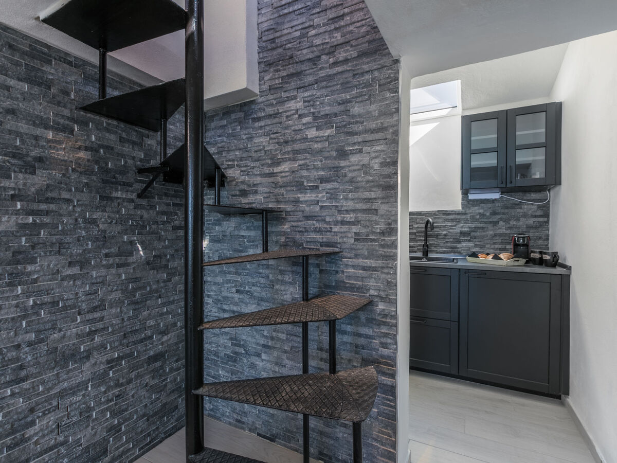 Spacieux et clair, complètement rénové en 2024, aménagement moderne: à l'étage supérieur: (escalier raide) séjour/chambre à coucher avec 1 divan-lit double et TV (écran plat).