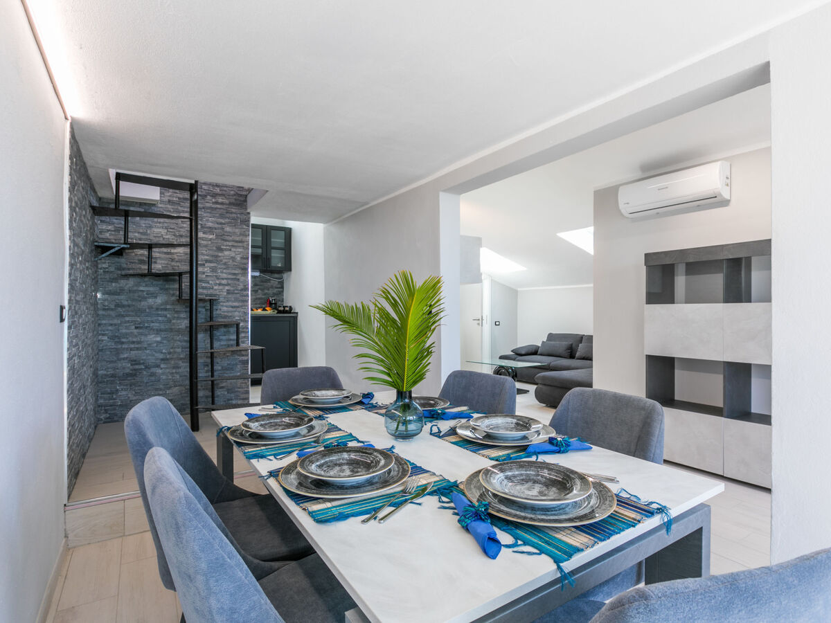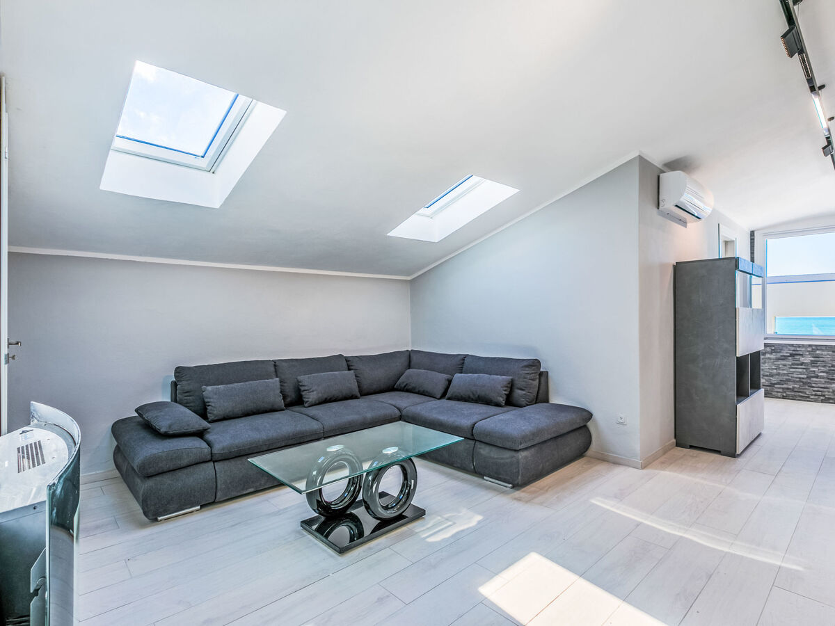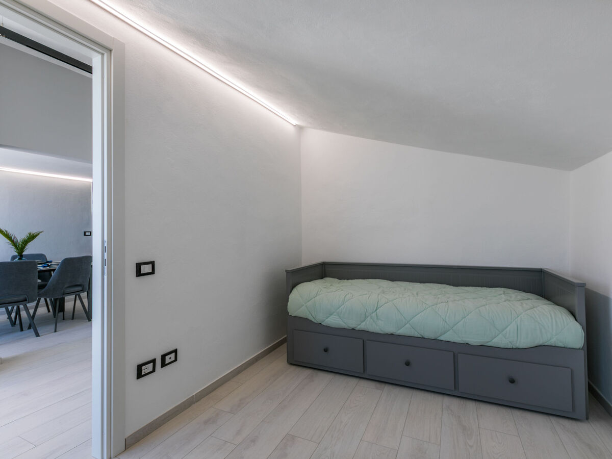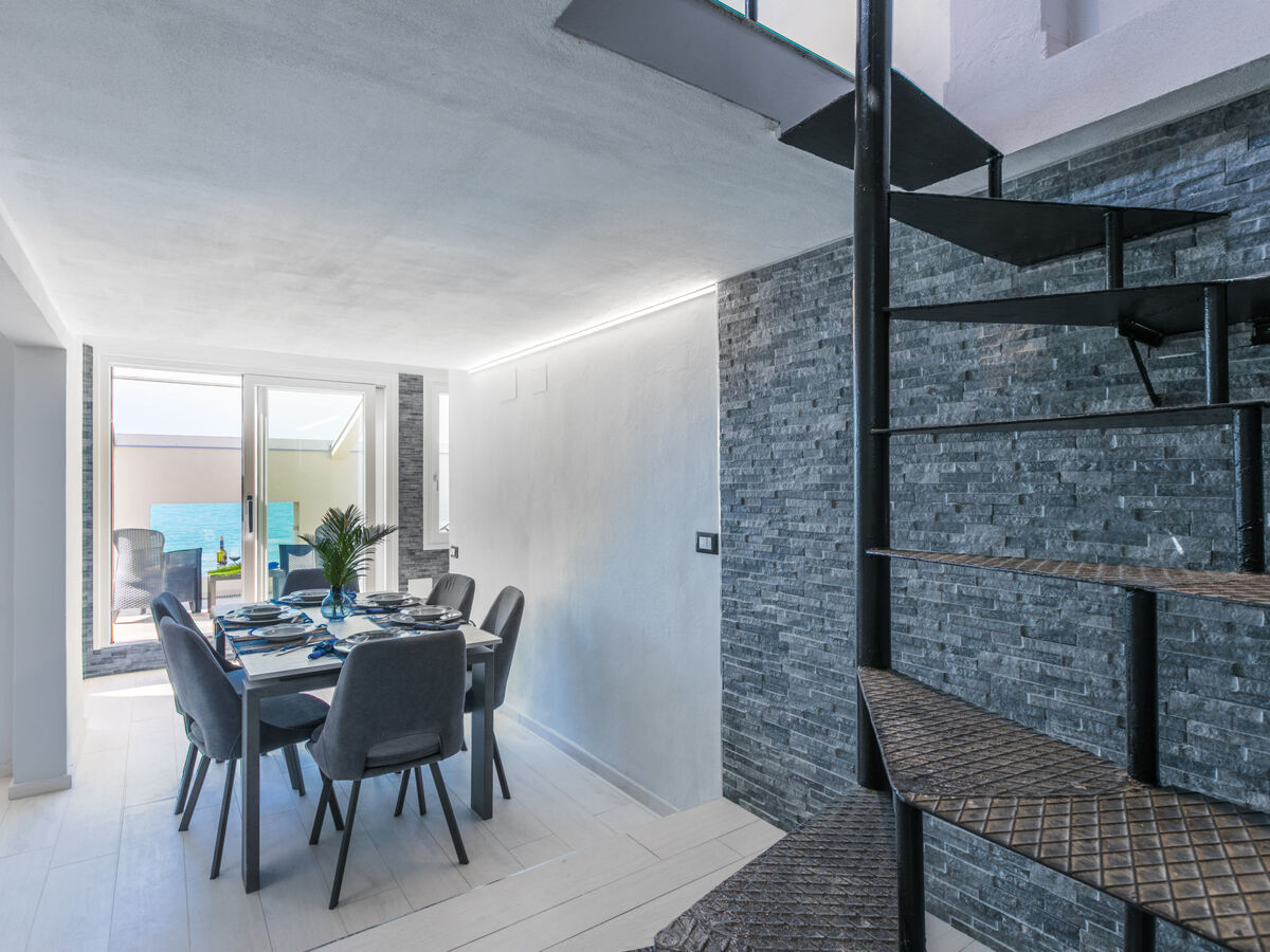 Spacieux et clair, complètement rénové en 2024, aménagement moderne: à l'étage supérieur: (escalier raide) séjour/chambre à coucher avec 1 divan-lit double et TV (écran plat).