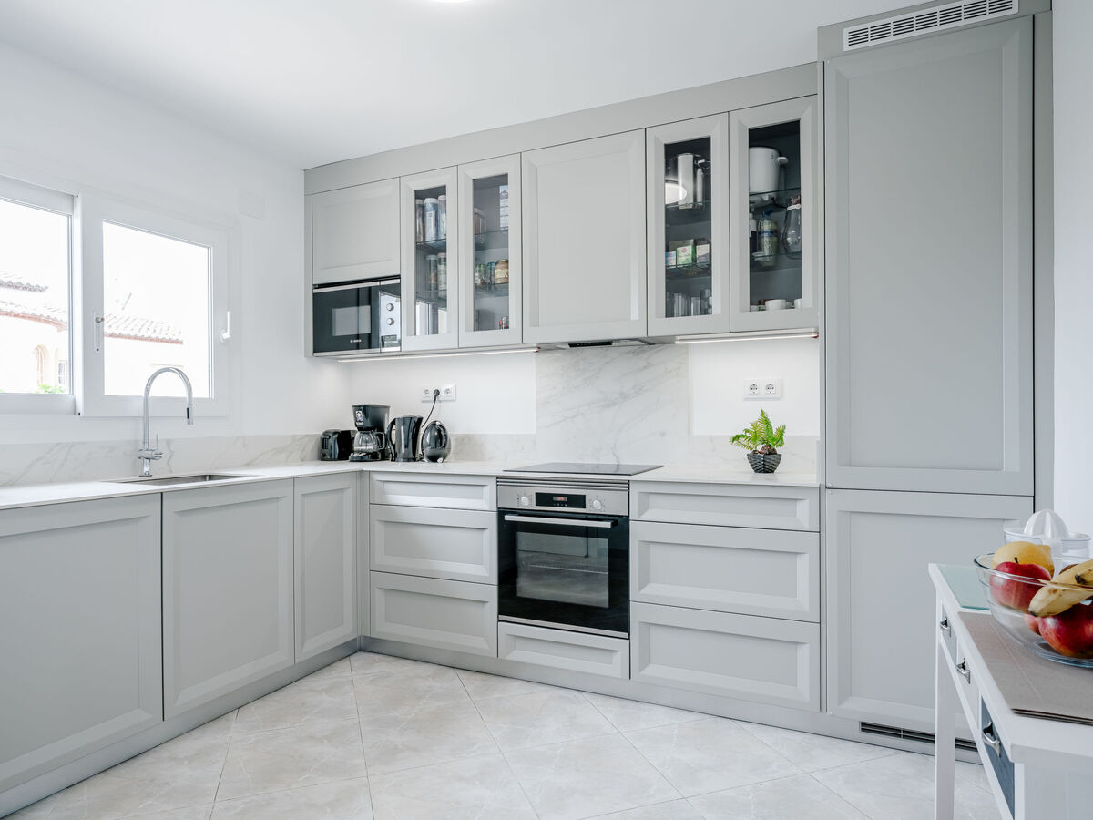 Grande cuisine (four, lave-vaisselle, 3 plaques à induction, grille-pain, bouilloire électrique, micro-ondes, congélateur, cafetière électrique).