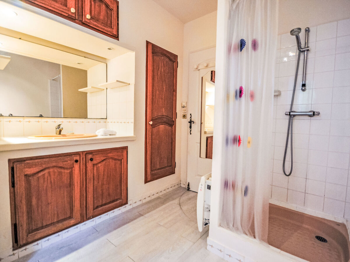 1 chambre avec 1 grand-lit (140 cm, longueur 190 cm), douche.