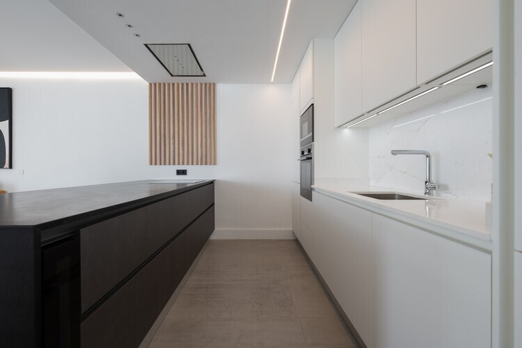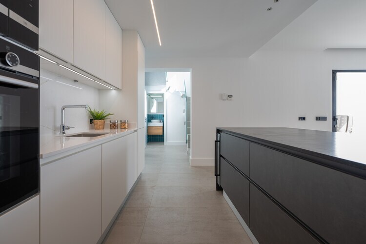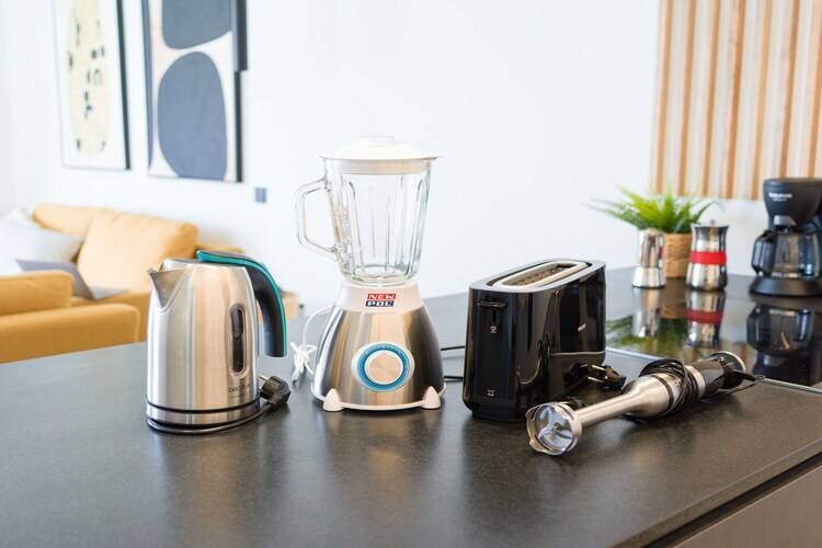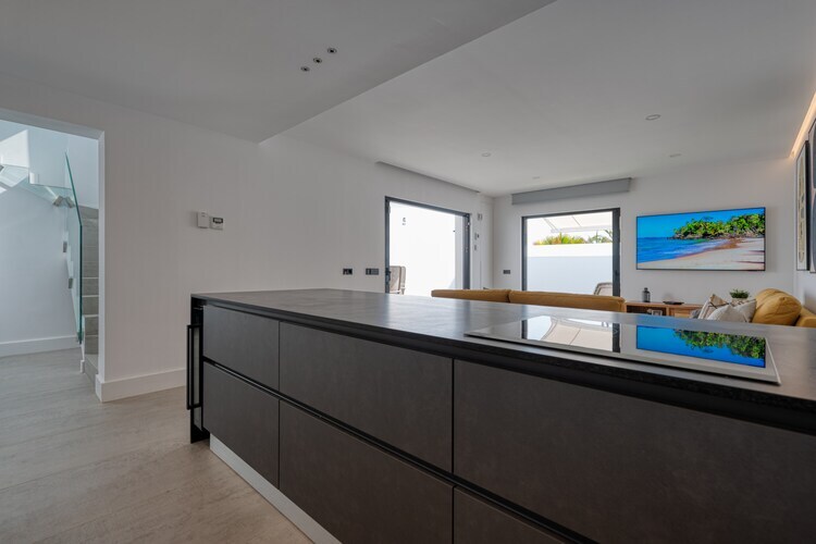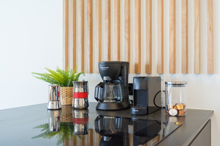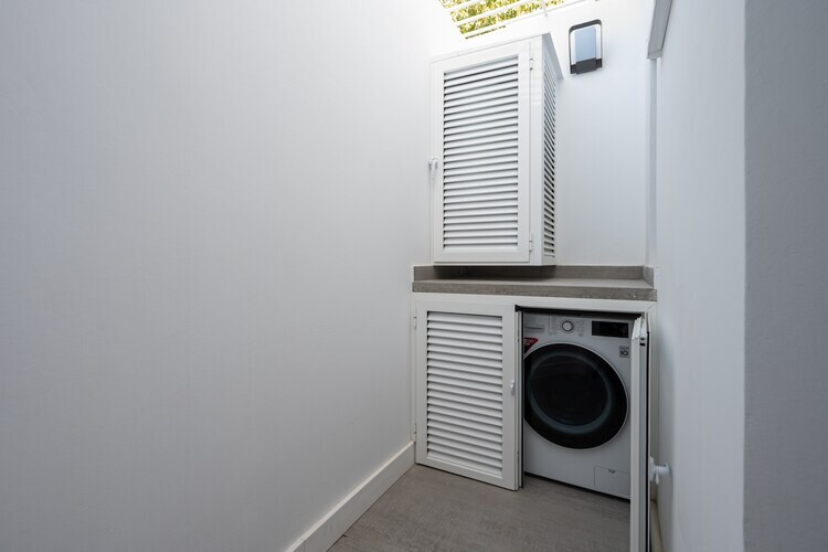 La cuisine entièrement équipée comprend une plaque de cuisson électrique, un four, un réfrigérateur, un mixeur, un grille-pain, une machine à café Nespresso et une machine à café filtre. Pour plus de confort, un cellier avec un grand réfrigérateur, un congélateur supplémentaire dans le garage et une spacieuse terrasse avec deux tables à manger extérieures sont à votre disposition. La grande piscine chauffée (service en option) vous permettra de profiter du soleil toute l'année.