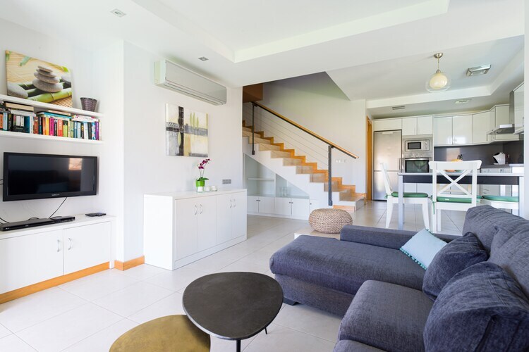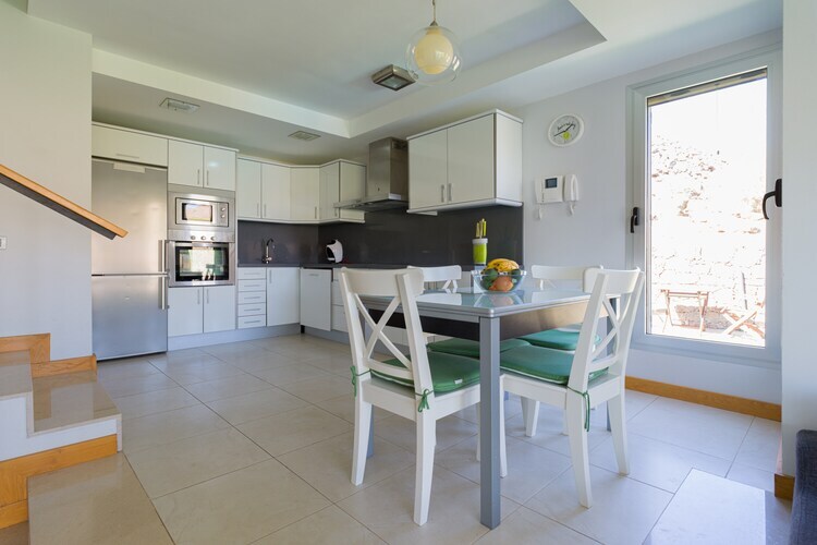 La villa dispose de deux chambres doubles bien aménagées : l'une idéalement située au premier étage avec accès direct au jardin et à la piscine, tandis que la seconde, à l'étage, donne accès à une terrasse ensoleillée avec vue panoramique. Les deux chambres sont équipées de la climatisation et d'une salle de bains privative. Le salon-salle à manger lumineux communique avec une cuisine entièrement équipée, idéale pour préparer vos repas. Vous pourrez vous divertir grâce à une télévision connectée par satellite à écran plat avec Netflix et YouTube, ainsi qu'à d'excellents équipements comme un barbecue.