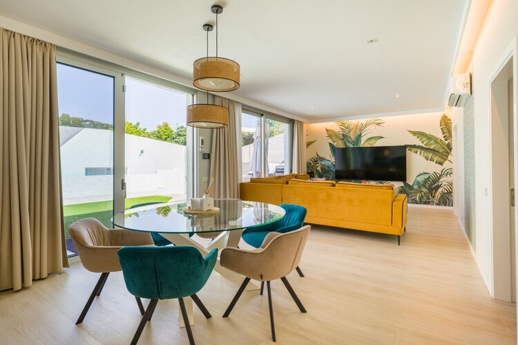 cuisine ouverte(bouilloire, grille-pain, cafetière/percolateur, four, micro ondes, lave-vaisselle , réfrigérateur, congélateur, ), salle à manger-salon(TV, table, coin salon), chambre(lit simple, lit simple), chambre(lit simple, lit simple), chambre avec salle de bains(lit double, douche), salle de bains(douche), salle de bains(douche), Accès Internet, Meubles de jardin, TV, TV, TV, lit bébé, lave-linge , climatisation, terrasse, jardin(clôturé), jardin, transats, transats, transats, transats, transats, transats, barbecue, piscine(privé, chauffée), chaise haute, fer à repasser, sèche-cheveux