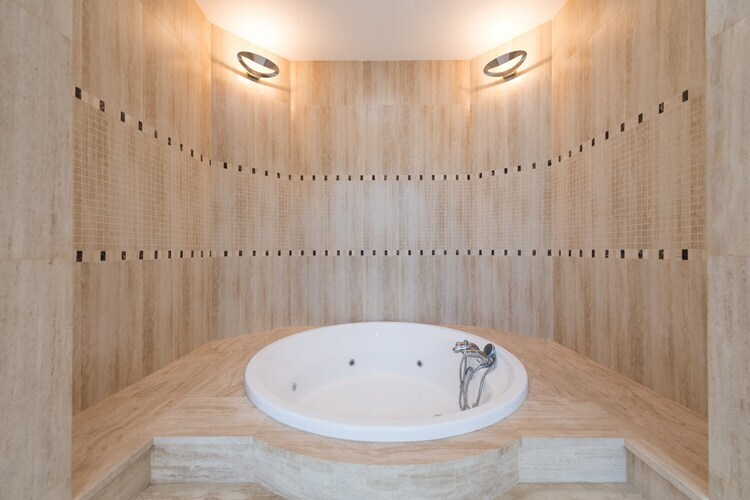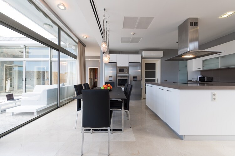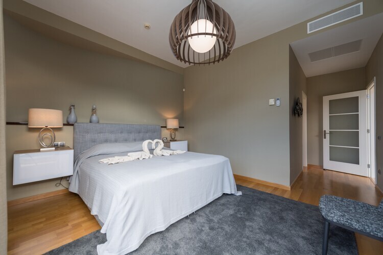 cuisine(bouilloire, grille-pain, cafetière/percolateur, four, micro ondes, lave-vaisselle , réfrigérateur, congélateur, ), salle à manger-salon(TV, table, coin salon), chambre(lit double), chambre(lit double), chambre(lit simple, lit simple), chambre(lit double), chambre(lit double), salle de bains(douche), salle de bains(douche), salle de bains(douche), salle de bains(douche), salle de bains(douche), WC(WC), Accès Internet, Meubles de jardin, spa nordique, lave-linge , terrasse, jardin(clôturé), jardin, barbecue, parking, piscine(privé, chauffée), fer à repasser, sèche-cheveux, Sea view
