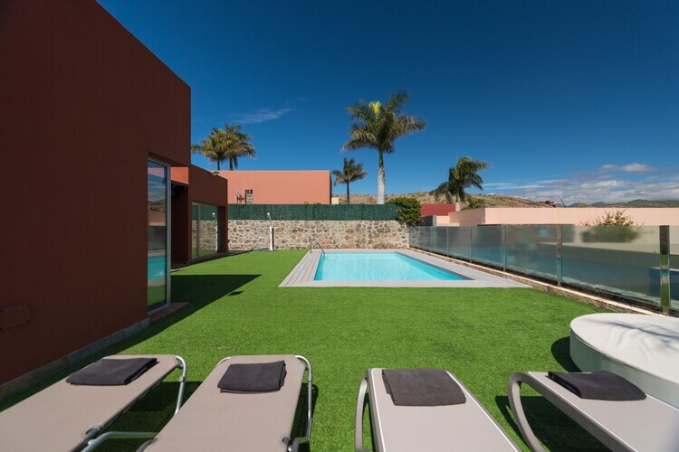Découvrez un chalet de plain-pied magnifiquement rénové, idéal pour des vacances en famille inoubliables. Il dispose d'une piscine privée chauffée (8 x 4 mètres) et d'une décoration exclusive à l'élégance moderne. Ce havre de paix allie parfaitement calme, confort et intimité, un véritable paradis pour se détendre et se ressourcer. Situé à seulement 8 minutes en voiture de la plage de Maspalomas, ce chalet constitue un pied-à-terre idéal pour explorer les environs pittoresques.