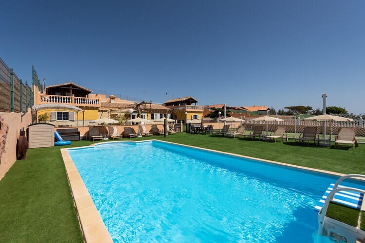 Évadez-vous dans cette superbe villa à Maspalomas, idéale pour les réunions de famille ou les groupes en quête de détente et de divertissement. Spacieuse, la propriété dispose d'une grande piscine chauffée, entourée d'un gazon artificiel luxuriant, idéal pour se détendre ou jouer. Profitez de nombreuses activités de plein air, comme le tennis, le football, le basket-ball et le ping-pong, ou détendez-vous dans l'espace détente avec barbecue. La villa offre un espace généreux pouvant accueillir jusqu'à 12 personnes, plus deux personnes supplémentaires sur un canapé-lit.