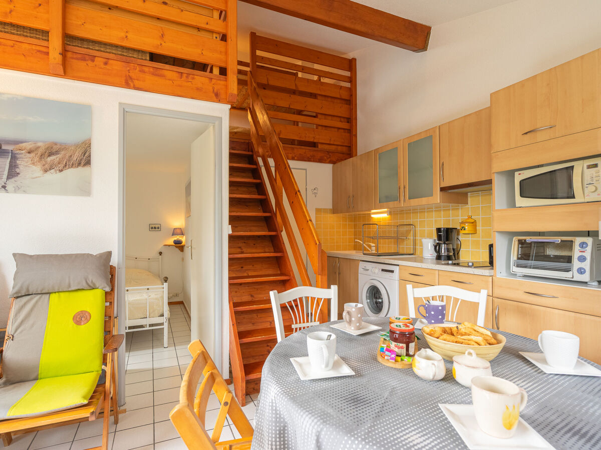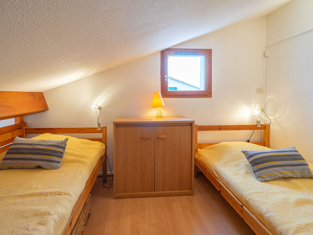 À l'étage supérieur: galerie mansardée avec 3 lits (90 cm, longueur 190 cm).