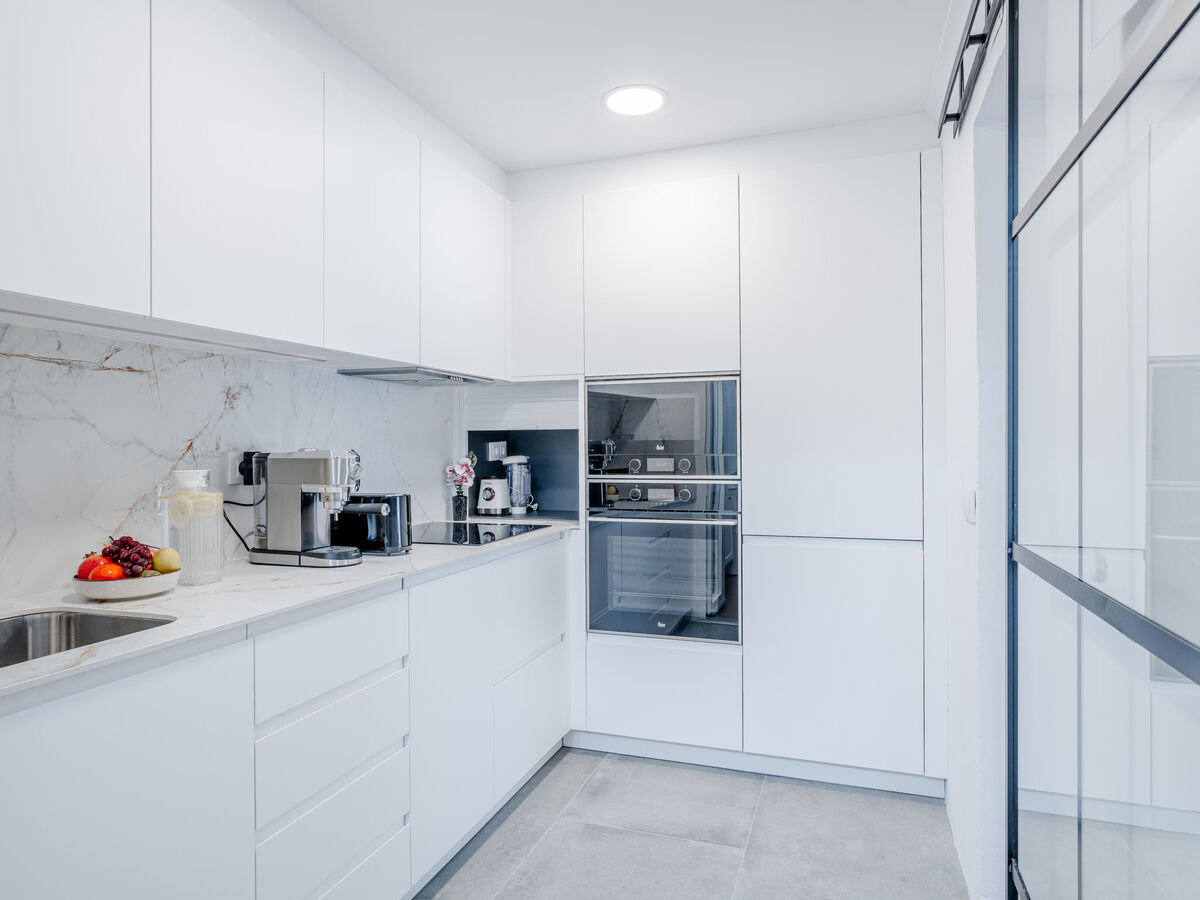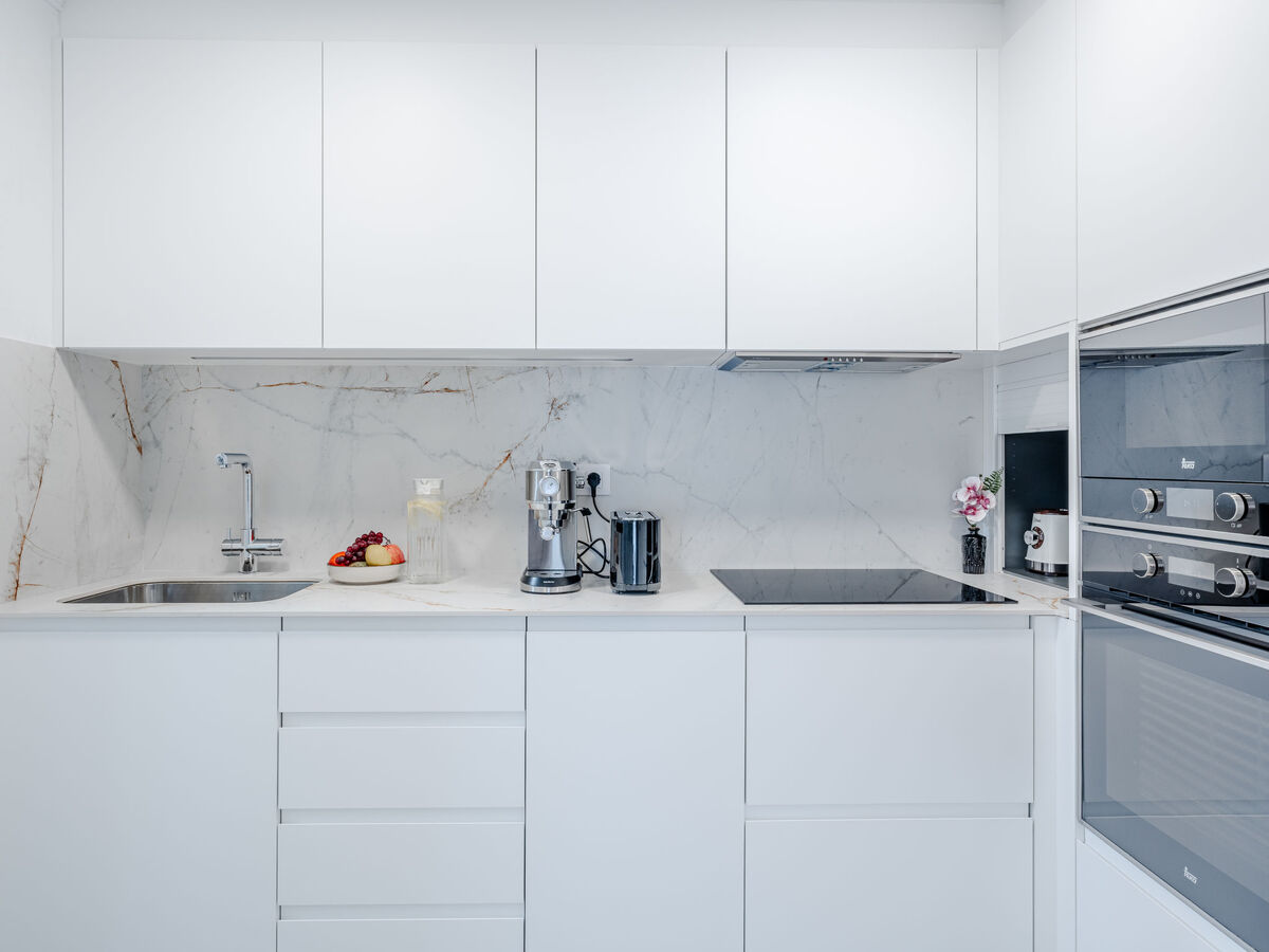 Cuisine (four, lave-vaisselle, 3 plaques vitrocéramiques, grille-pain, micro-ondes, congélateur, cafetière électrique).
