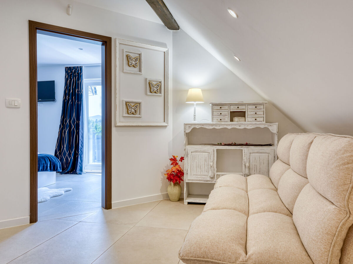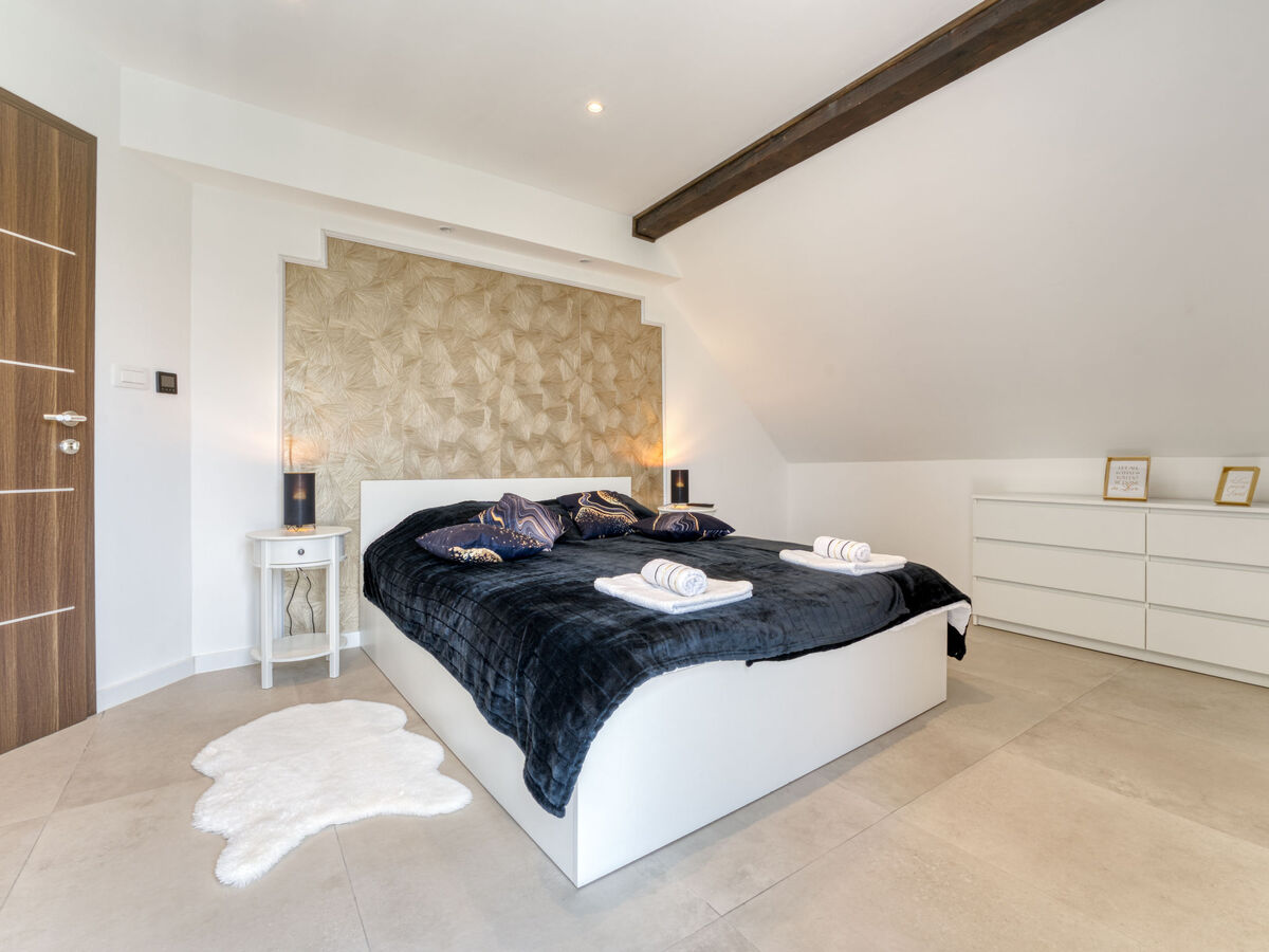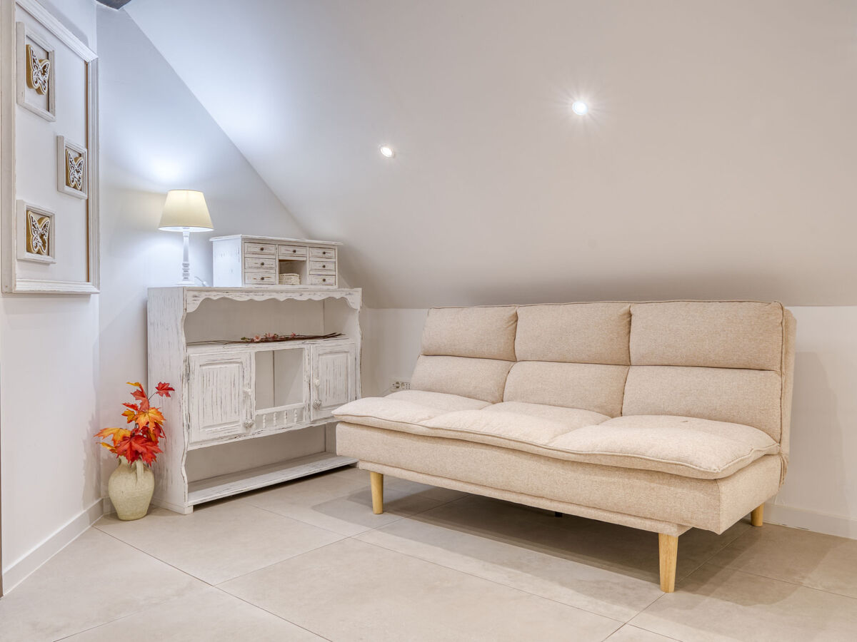 1 chambre, mansardée hauteur plafond 100 - 280 cm avec 1 grand-lit (160 cm, longueur 200 cm), TV (câblée).