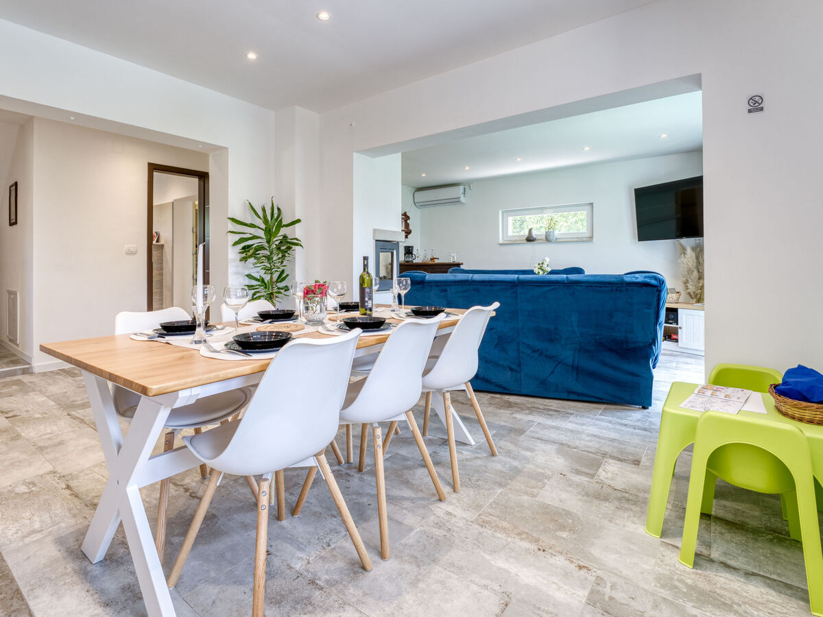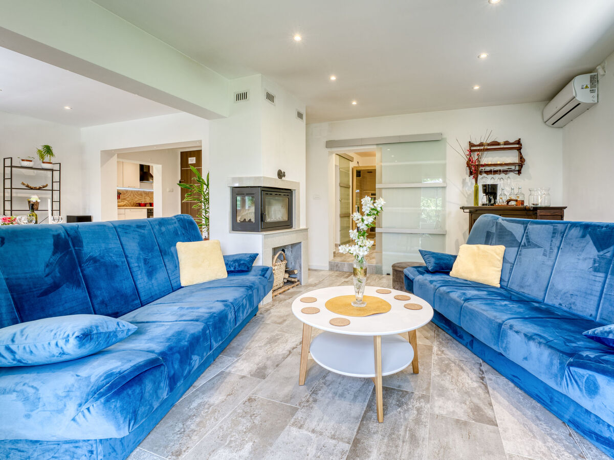 Séjour/salle à manger avec cheminée, TV (câblée) et air-conditionné.