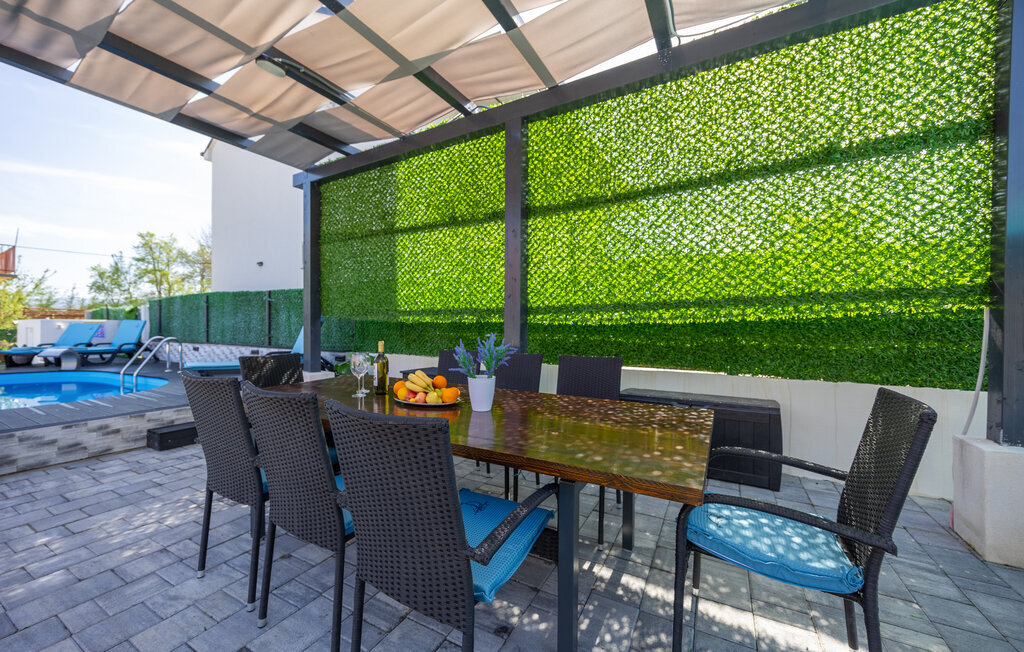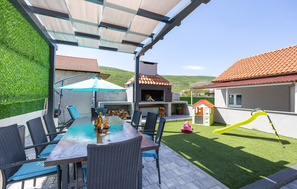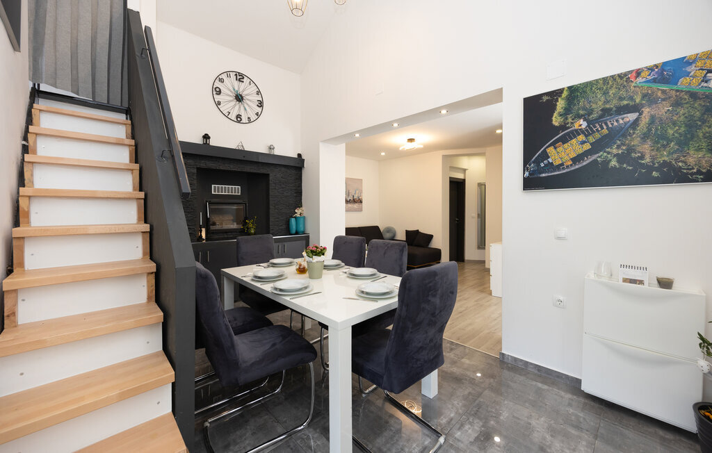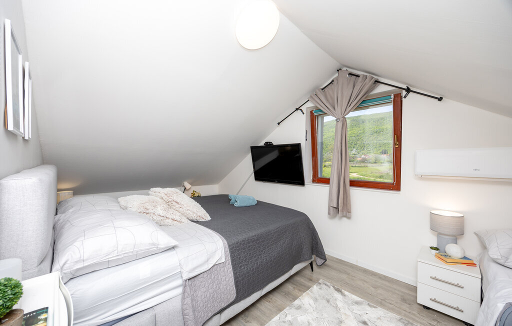 Découvrez la nature pittoresque lors de longues randonnées à pied ou à vélo le long de chemins idylliques et profitez des vues impressionnantes sur les douces collines et les oliveraies. Visitez la charmante petite ville de Drnis avec sa vieille ville historique, où vous trouverez des cafés confortables, des restaurants traditionnels et des marchés locaux proposant des spécialités régionales. Explorez également les parcs nationaux voisins de Krka et Kornati, où vous attendent des eaux cristallines, des chutes d'eau spectaculaires et des paysages variés.