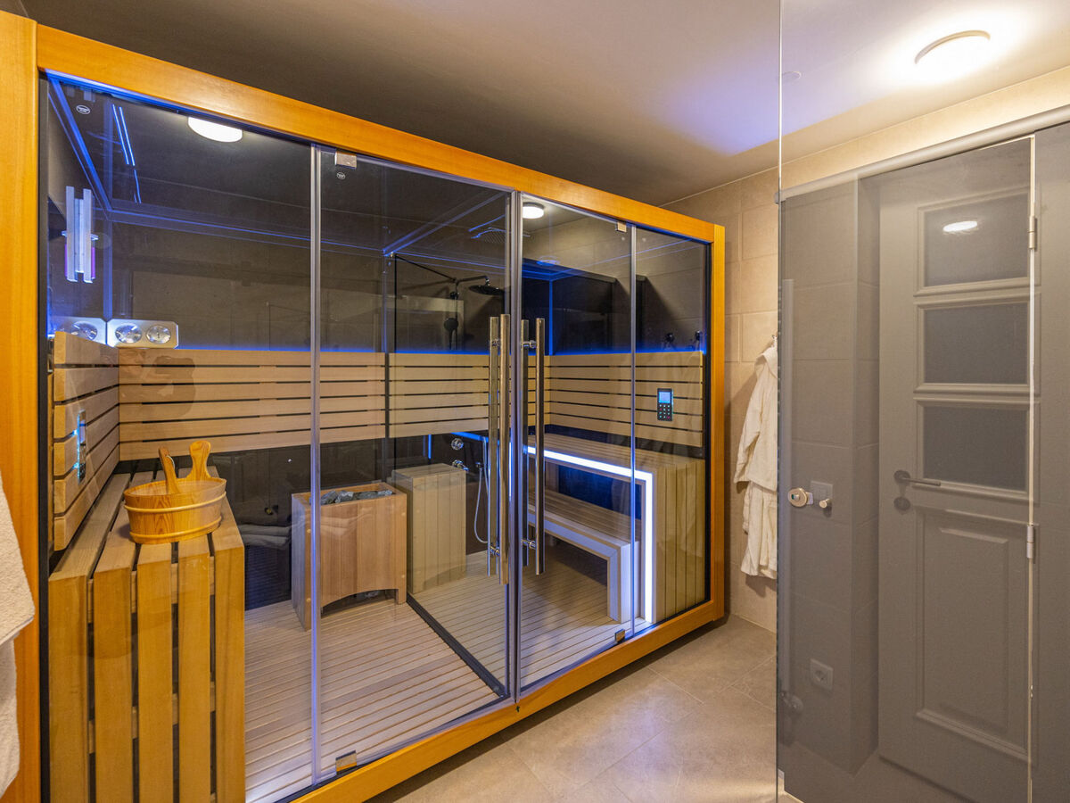 À l'étage supérieur: 2 chambres, chaque chambre avec: 1 lit double (2 x 90 cm, longueur 200 cm), douche/WC.
