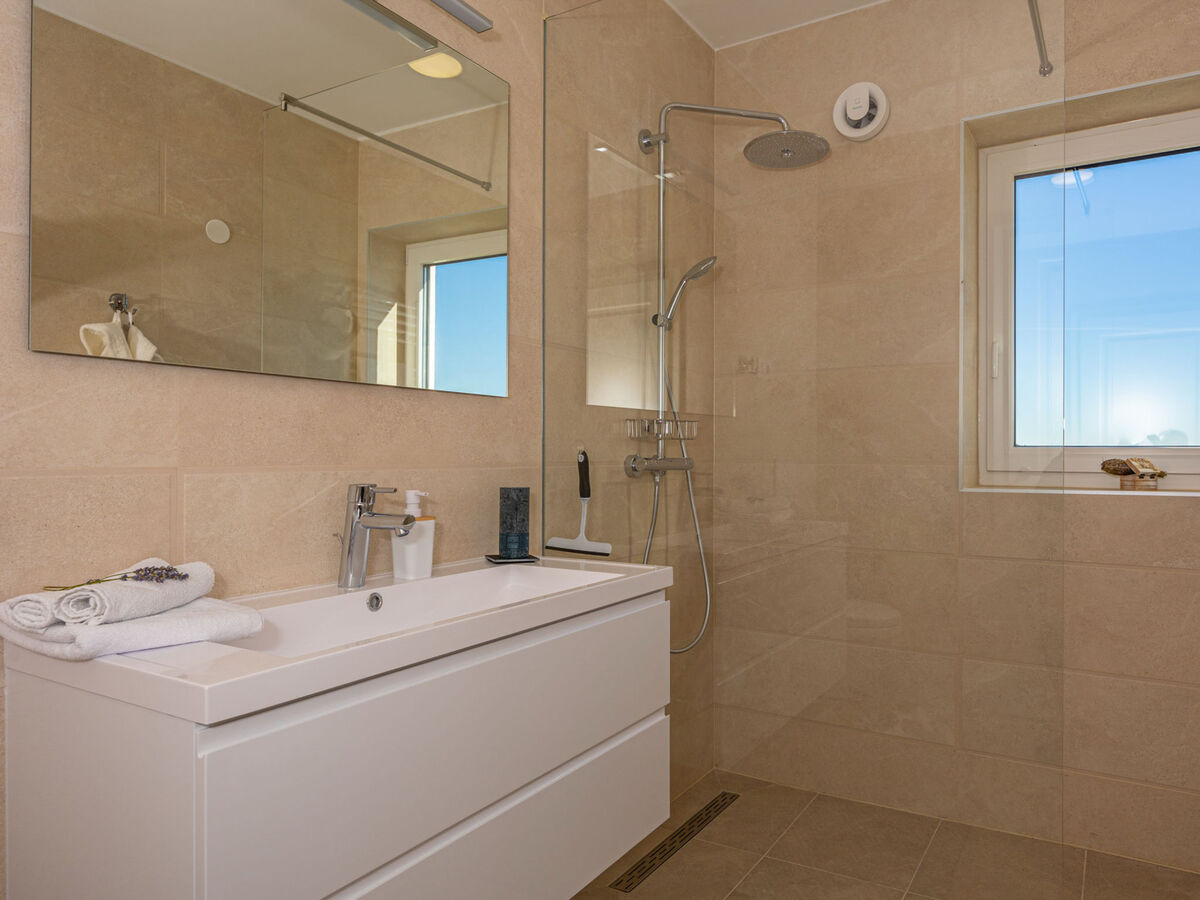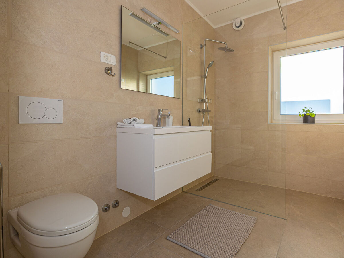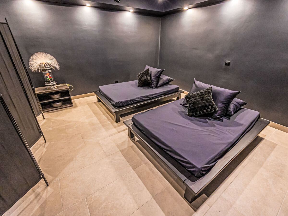 À l'étage inférieur: 2 chambres, chaque chambre avec: 1 lit double (2 x 90 cm, longueur 200 cm), douche/WC.