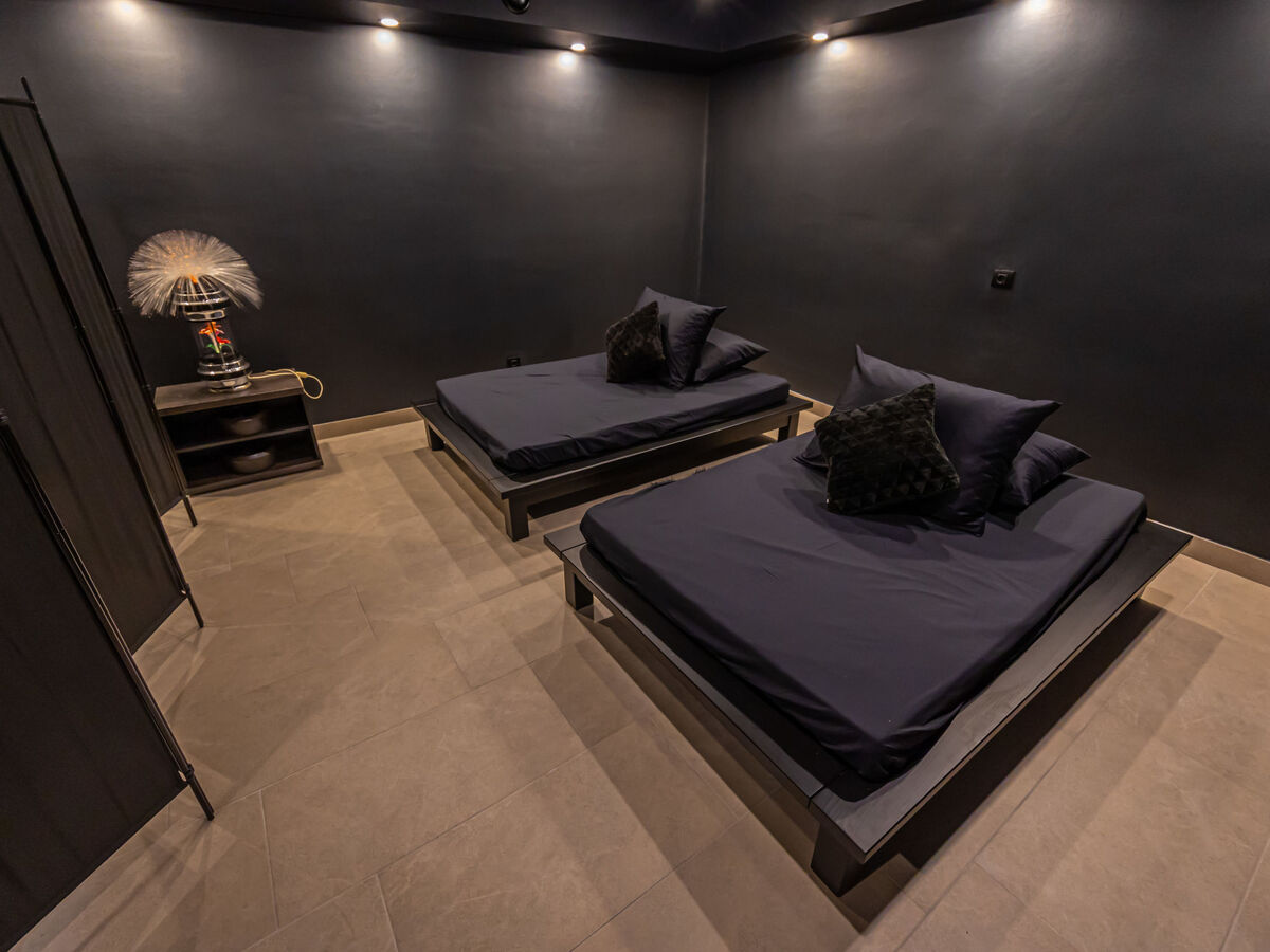 2 chambres, chaque chambre avec: 1 lit double (2 x 90 cm, longueur 200 cm), douche/WC.
