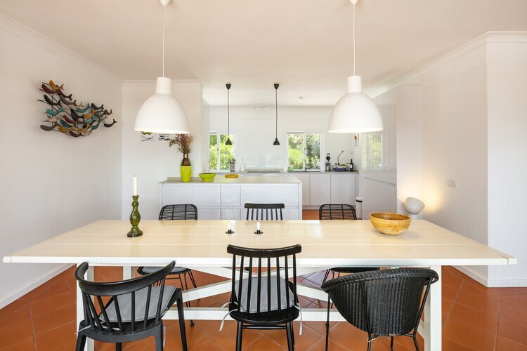 Cette villa bien équipée peut accueillir jusqu'à 6 personnes et dispose de trois chambres climatisées et de trois salles de bains modernes. La cuisine spacieuse est entièrement équipée avec les appareils électroménagers essentiels, dont un lave-vaisselle et un lave-linge. Dans le salon chaleureux, profitez de la télévision par satellite et du confort d'un poêle à bois. À l'extérieur, l'espace piscine est entouré de transats et le vaste jardin offre une vue paisible sur les montagnes de Monchique. Avec des équipements pratiques comme le Wi-Fi, le chauffage de la piscine en option et une équipe de gestion locative dédiée, cette villa vous garantit des vacances agréables.
