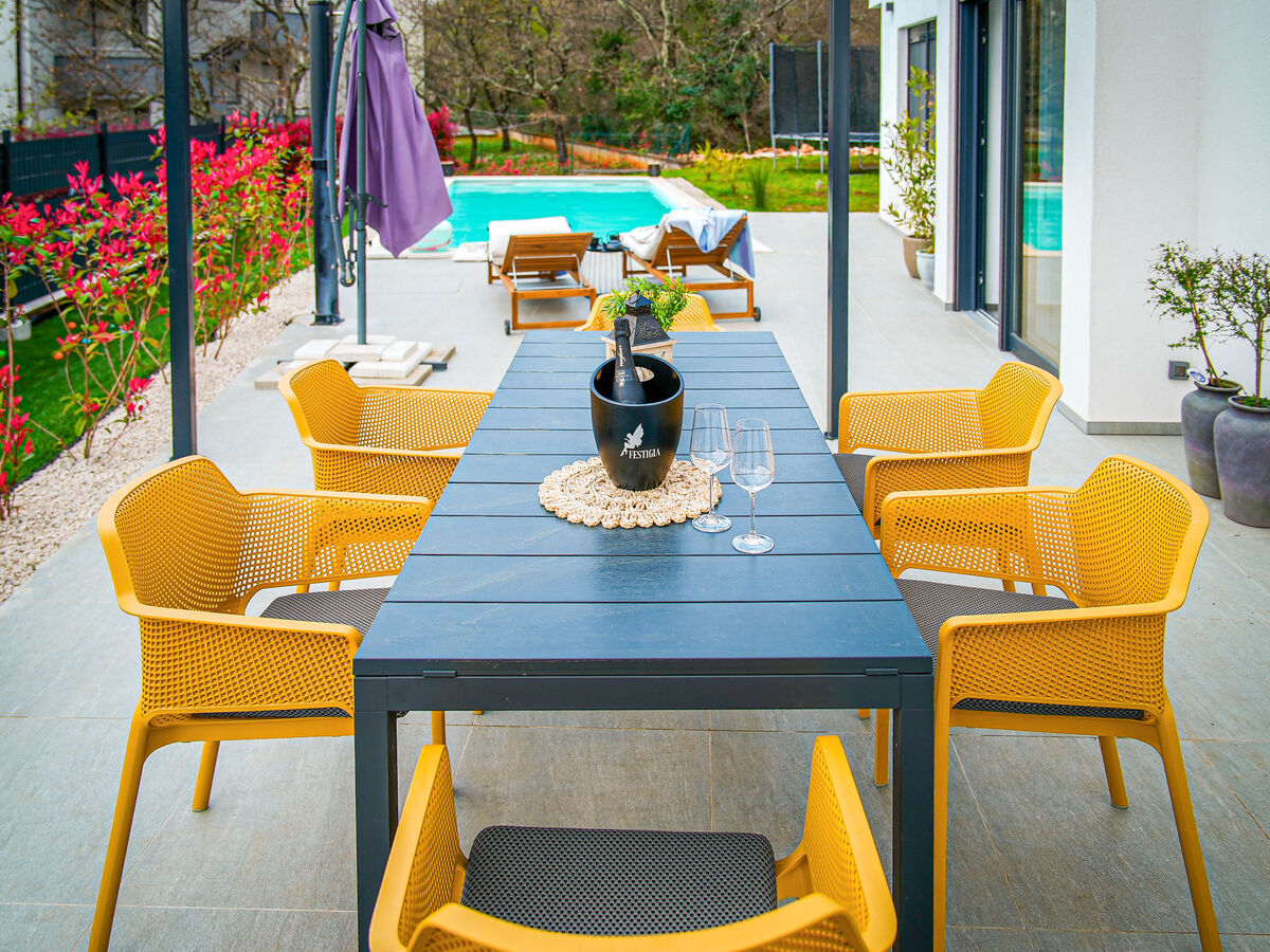 A usage privé: terrain 600 m2, piscine rectangulaire (9 x 4 m, profondeur 150 cm, disponibilité saisonnière: 01.Mai.