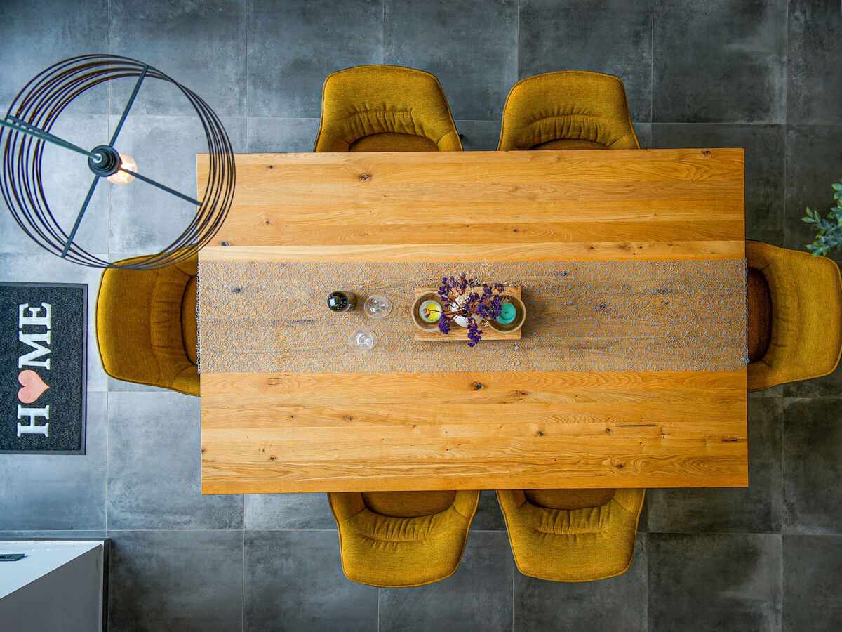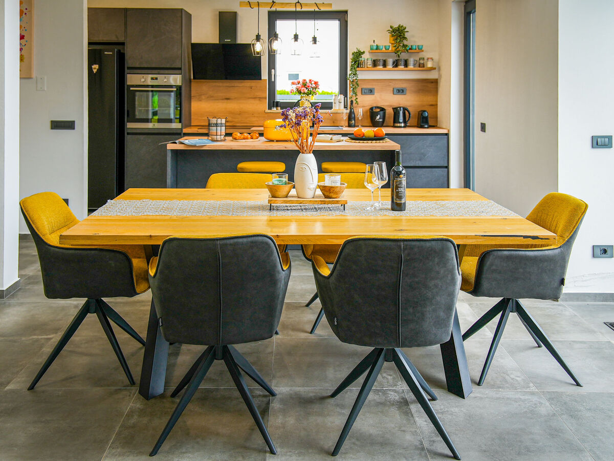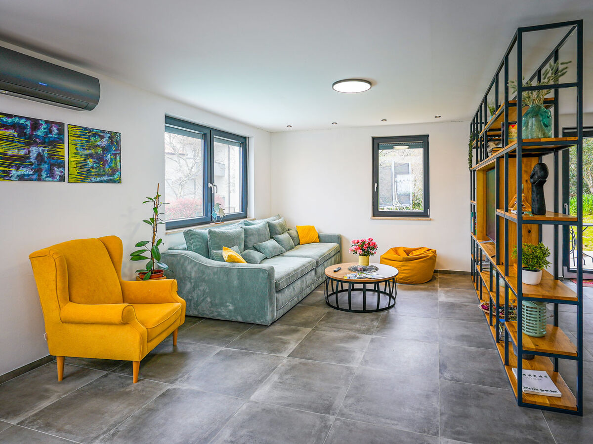 Aménagement très confortable et de bon goût: séjour/salle à manger avec TV (satellite) et air-conditionné.