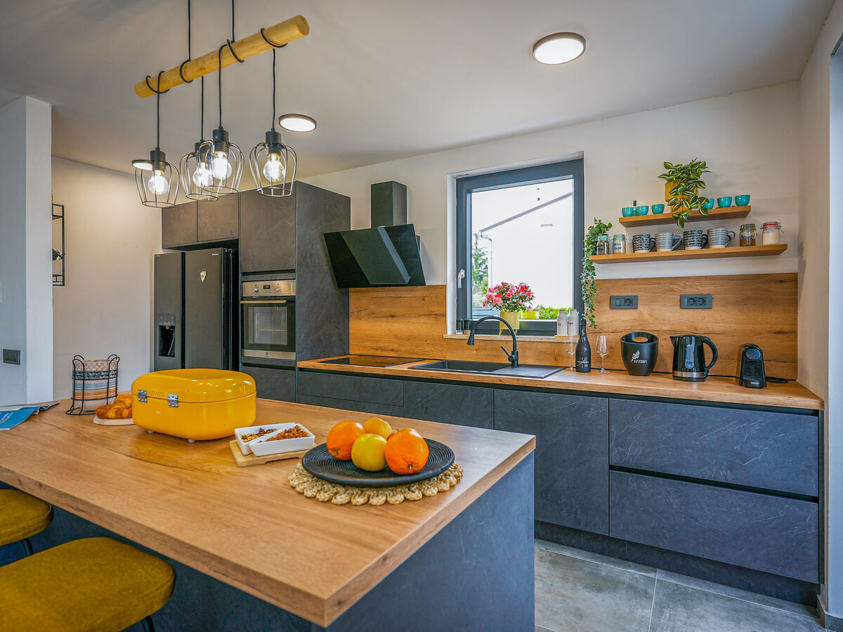 Cuisine ouverte (4 plaques de cuisson, four, lave-vaisselle, grille-pain, bouilloire électrique, micro-ondes, congélateur, cafetière électrique).
