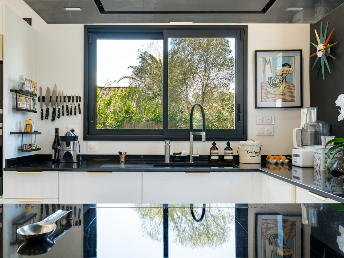 Cuisine (four, lave-vaisselle, 4 plaques à induction, grille-pain, bouilloire électrique, micro-ondes, congélateur, cafetière électrique, Capsules pour machine à café (Nespresso) (NON INCLUSES)).