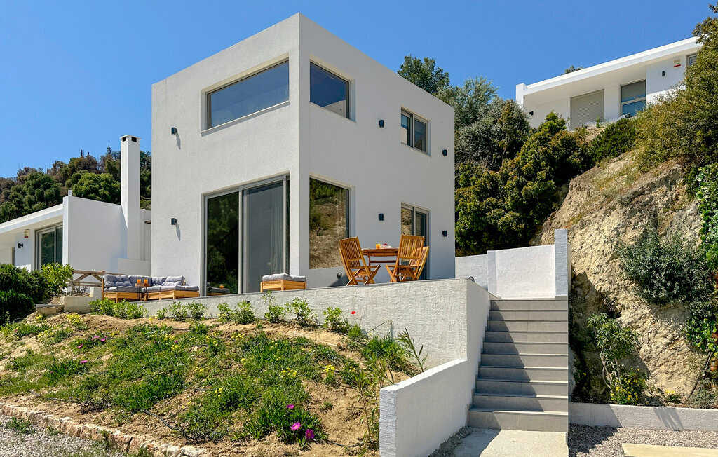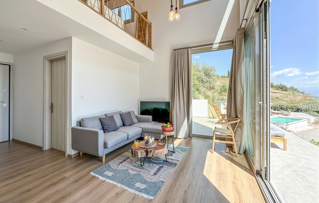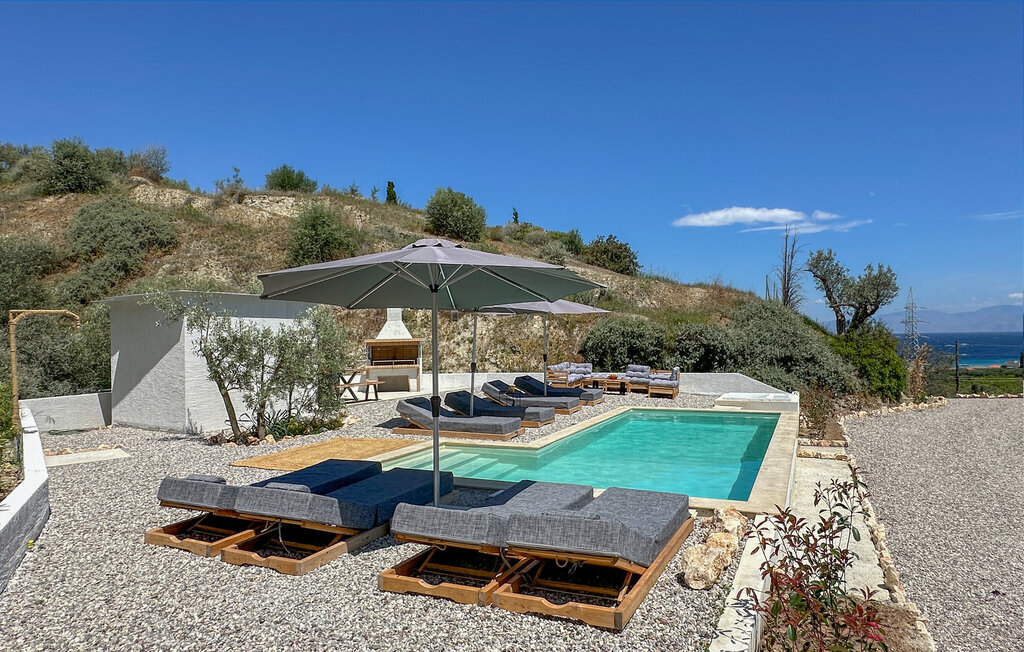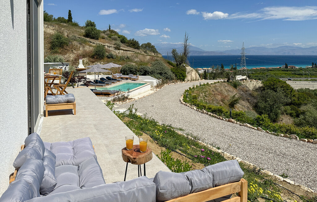 Cette maison de vacances moderne vous gâte avec une belle vue sur le golfe de Corinthe et vous accueille dans un intérieur clair et élégant. Réjouissez-vous de prendre des repas harmonieux et planifiez vos activités dans l'ambiance fraîche du salon ouvert. Après une longue journée, regardez un film en streaming sur le canapé ou lancez-vous un défi en jouant à un jeu de société.