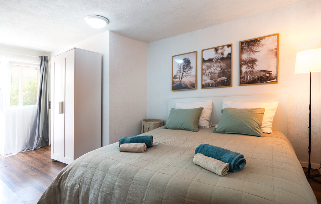 Détendez-vous au bord de la piscine privée sur des chaises longues confortables ou rafraîchissez-vous dans l'eau. Profitez du calme dans la cour intérieure protégée, où des groupes de sièges, des chaises colorées et un coin de jeu confortable pour les enfants vous attendent. Préparez un dîner en plein air sur le barbecue et mangez sous le parasol en toute convivialité. Terminez la journée sur le balcon avec vue sur les montagnes environnantes.