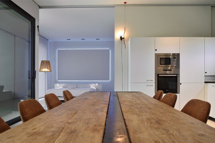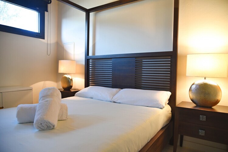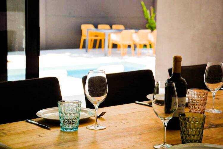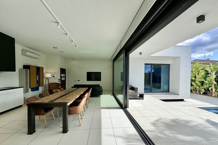 À l'intérieur, la villa dispose d'un salon ouvert avec de grandes fenêtres et d'une cuisine entièrement équipée donnant sur la piscine et le jardin. Trois salles de bains modernes avec douches sont également disponibles, idéales pour les grands groupes. Le linge de lit est inclus dans le forfait ménage, et des serviettes, des draps de bain, des lits bébé et des chaises hautes sont disponibles à la location.