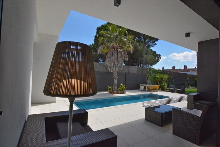 Rez-de-chaussée: (Salle de séjour(TV, table, coin salon), cuisine ouverte(bouilloire, grille-pain, cafetière/percolateur, four, micro ondes, lave-vaisselle , réfrigérateur, congélateur, Presse-agrumes, ), chambre(lit double), chambre(Lit superposé), chambre(lit double), chambre(lit double), salle de bains(douche), salle de bains(douche), salle de bains(douche), Accès Internet) Meubles de jardin, lave-linge , climatisation, terrasse, jardin(clôturé), jardin, barbecue, parking, piscine(privé), fer à repasser, pompe à chaleur air/air, sèche-cheveux