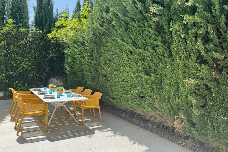 cuisine(grille-pain, cafetière/percolateur, four, micro ondes, réfrigérateur, congélateur, ), salle à manger-salon(TV, table, coin salon), chambre(Lit superposé), chambre(lit simple, lit simple), chambre(lit double), salle de bains(douche), salle de bains(douche), Accès Internet, Meubles de jardin, lave-linge , terrasse, jardin, barbecue, piscine(partagé avec d'autres clients, Ouverte de juillet jusqu’au août. ), fer à repasser, sèche-cheveux