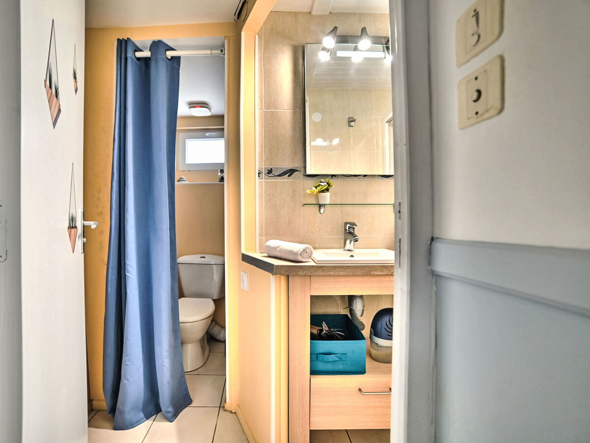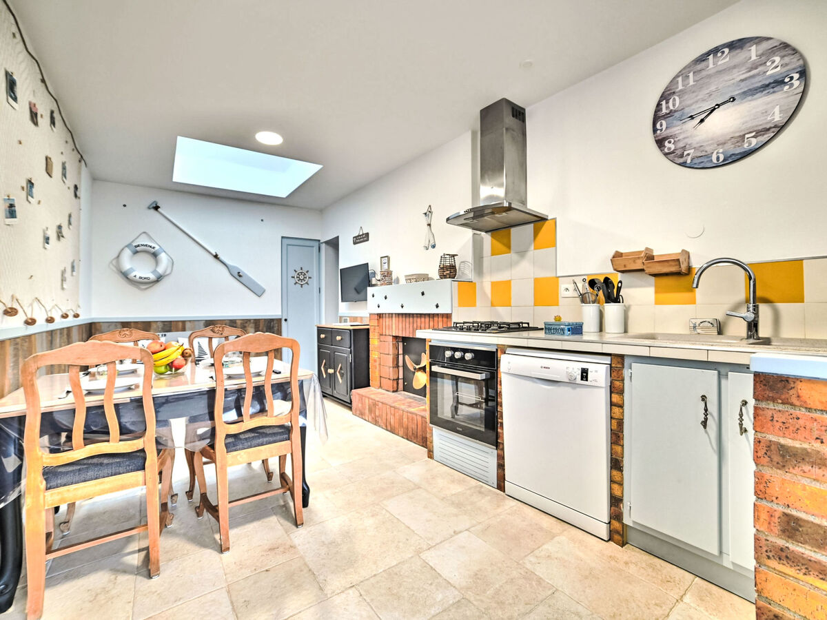 Cuisine ouverte dans l'entrée (four, lave-vaisselle, 4 feux, grille-pain, bouilloire électrique, micro-ondes, cafetière électrique).