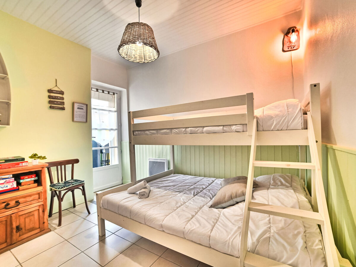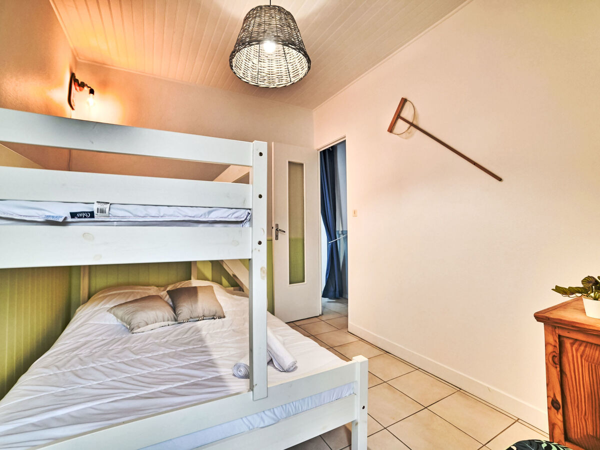 1 chambre avec 1 x 1 lits superposés (90 cm, longueur 190 cm), 1 grand-lit (1 x 140 cm, longueur 190 cm).