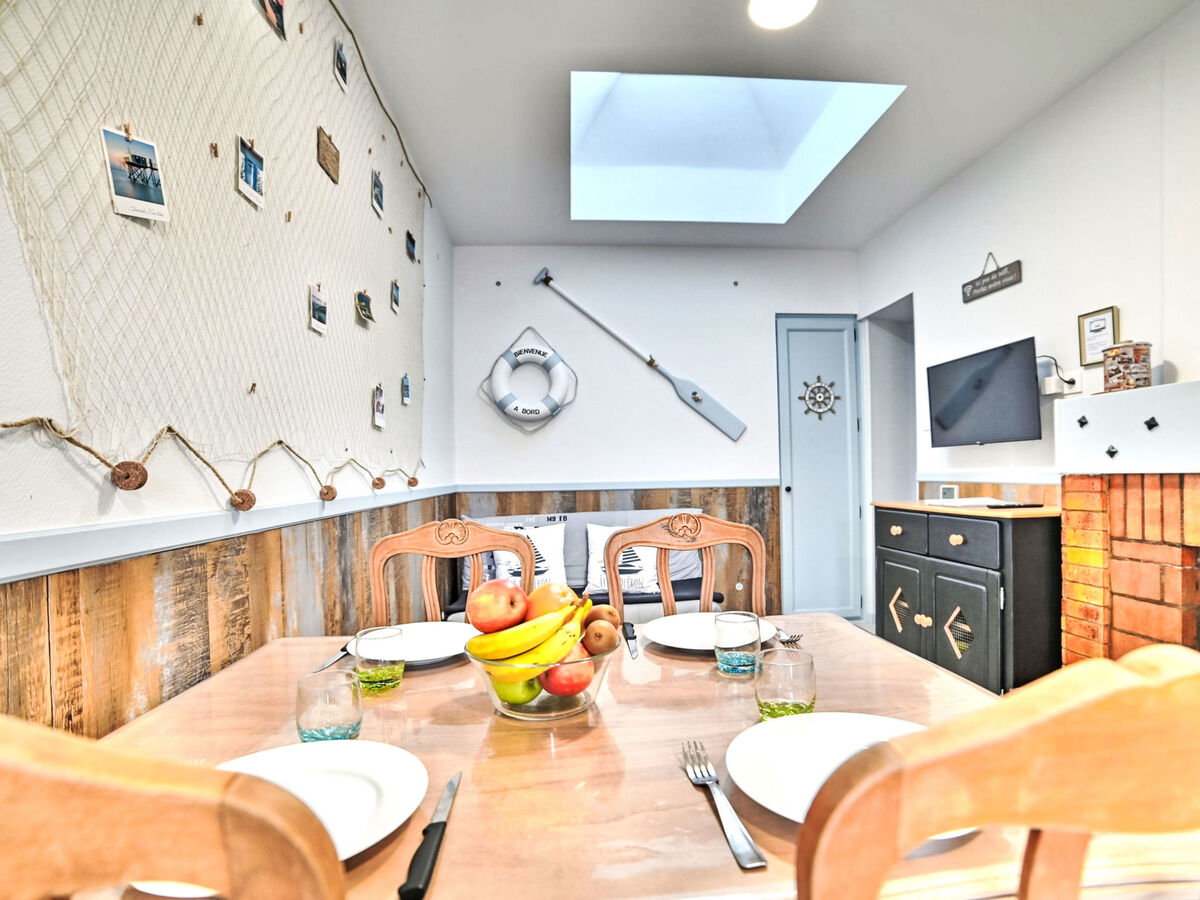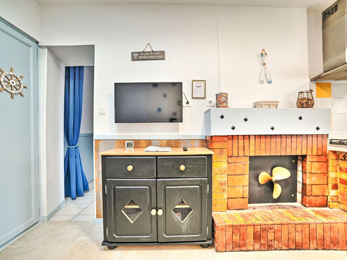 Aménagement simple: séjour/salle à manger avec TV (écran plat).