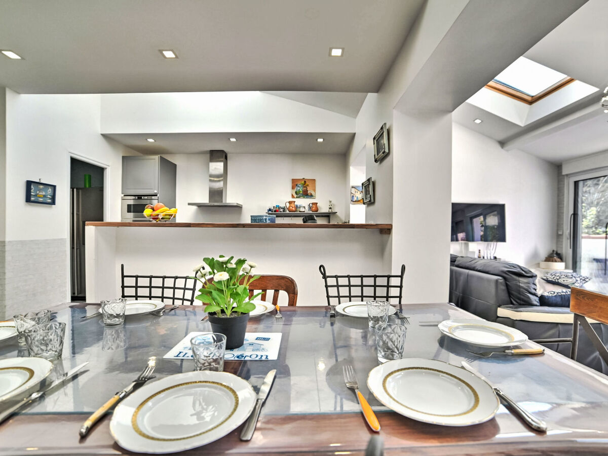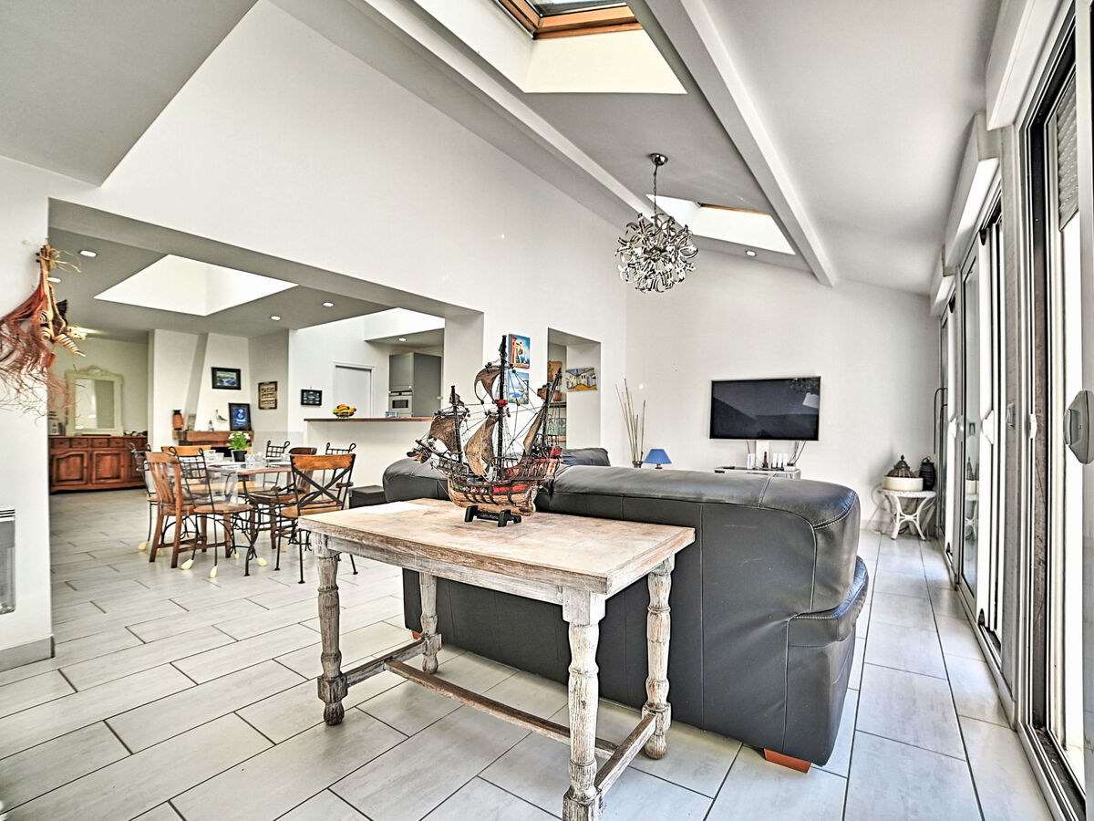 Aménagement confortable et moderne: grand séjour/salle à manger avec TV (écran plat).